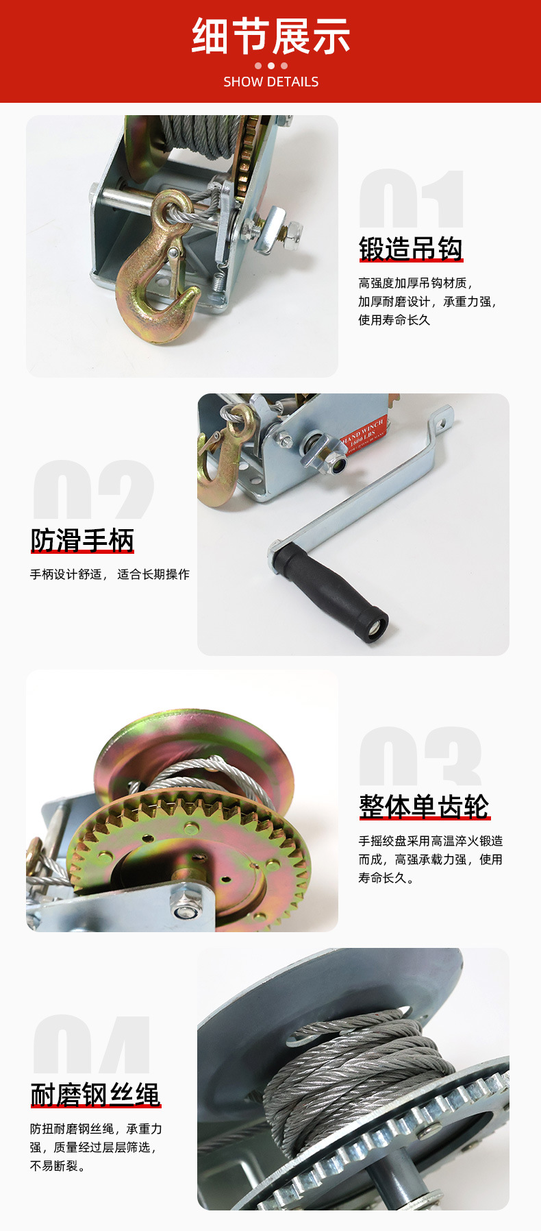 Ручная лебедка для стального троса от производителя, для инженерных работ, для прицепов.