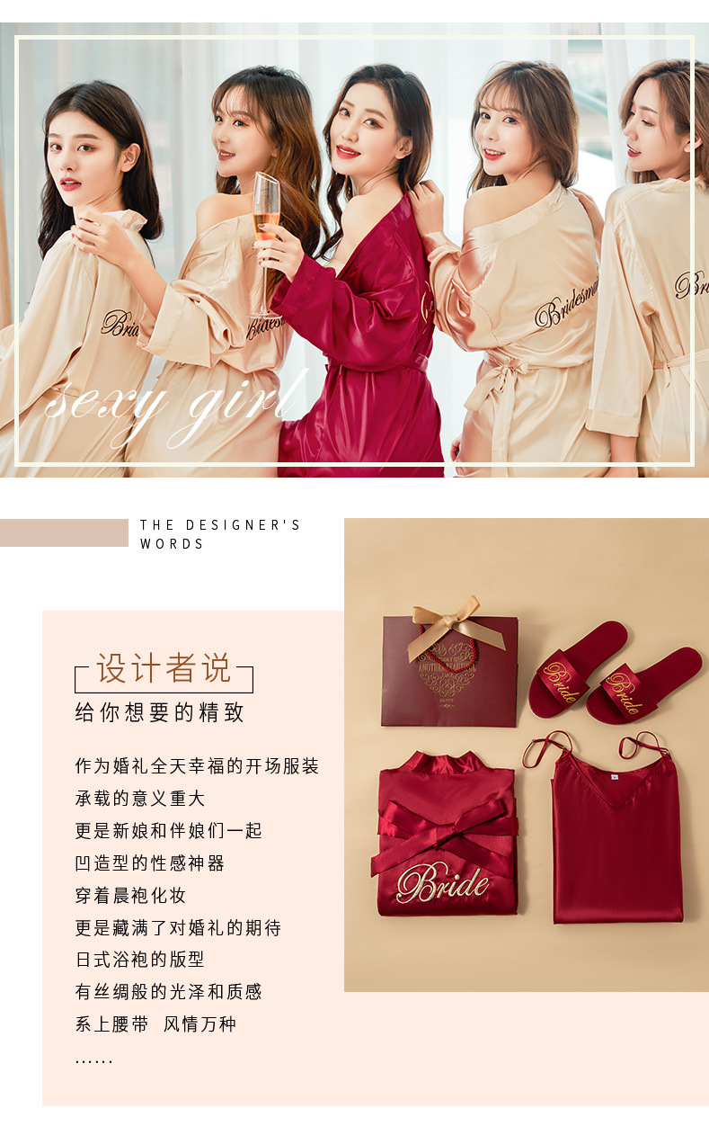 Халат для невесты и подружки невесты, свадебный шелковый халат на день рождения, вечерние пижамы с вышивкой, красная ночная рубашка, свадебный халат