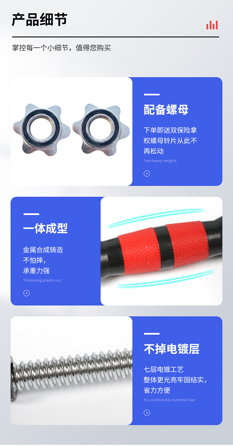 Двойная Защитная Гальваническая гайка Шелковый стержень Гантель Тренажерный зал Переменный разъем для штанги Аксессуары Твердый чугунный стержень для гантелей