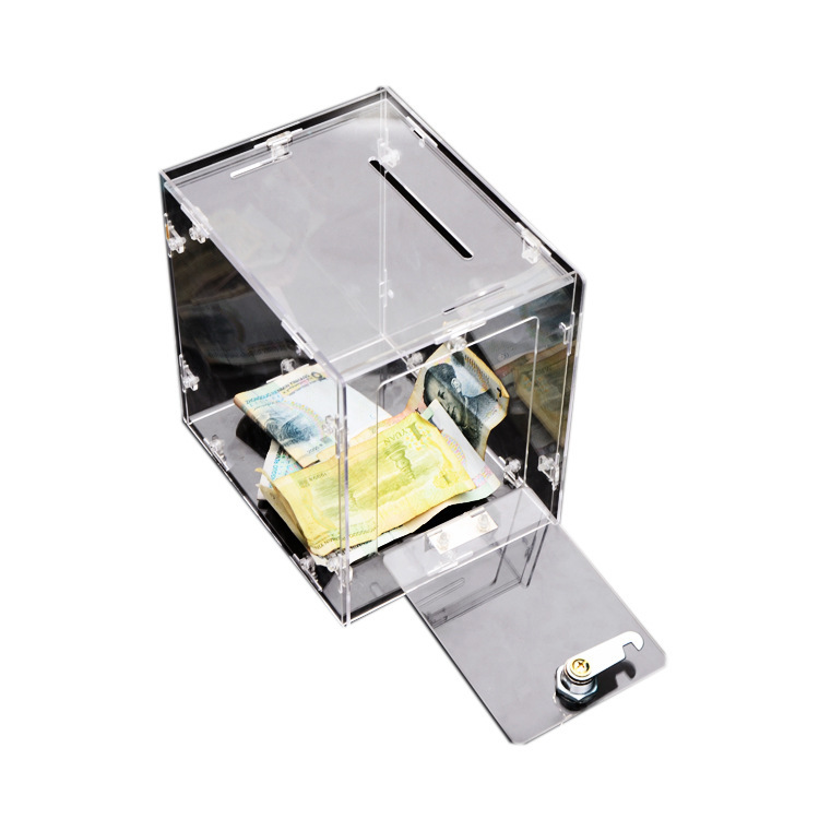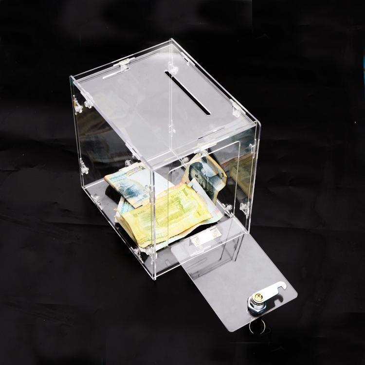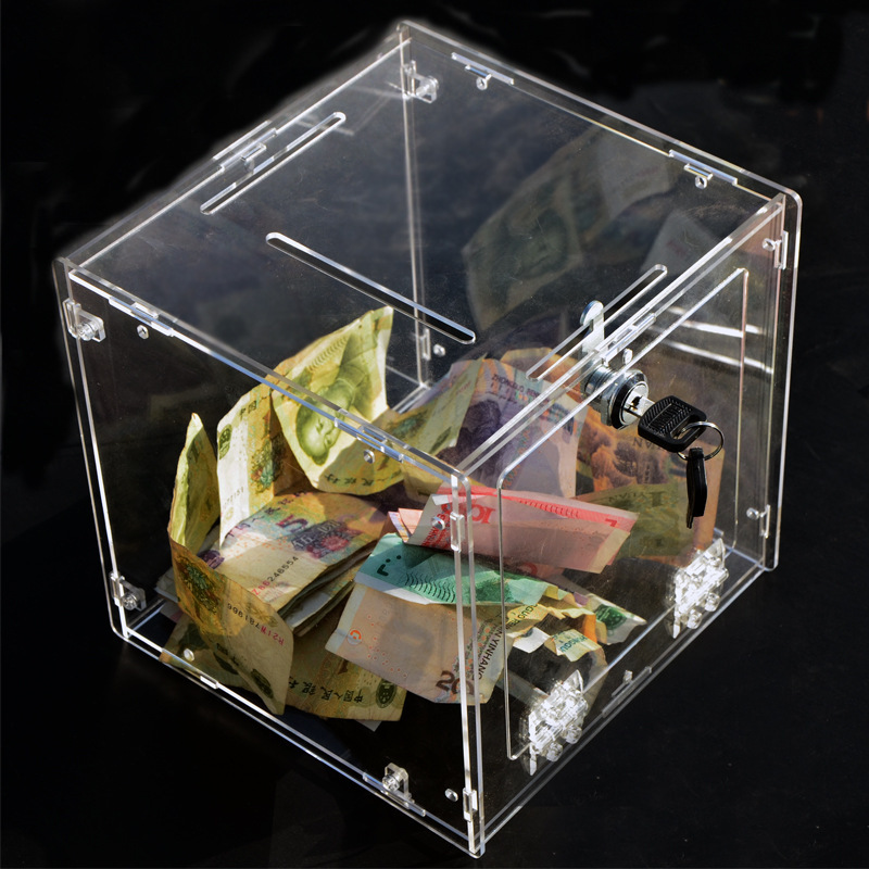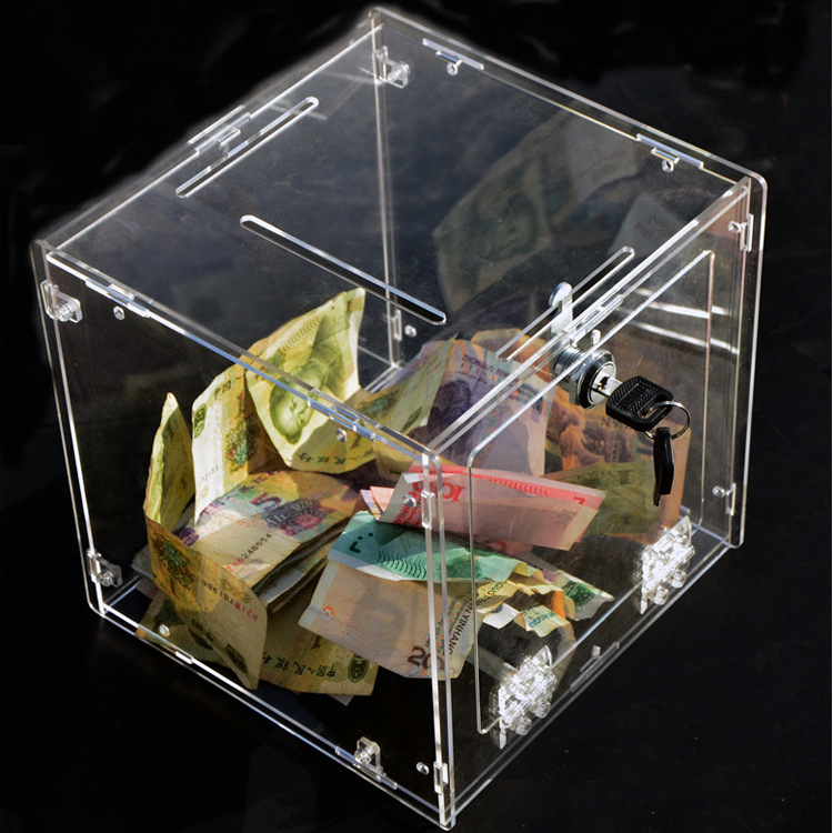 Акриловая прозрачная коробка денежного ящика коробки пожертвования музыки коробки штрафа Полностью прозрачная коробка для голосования