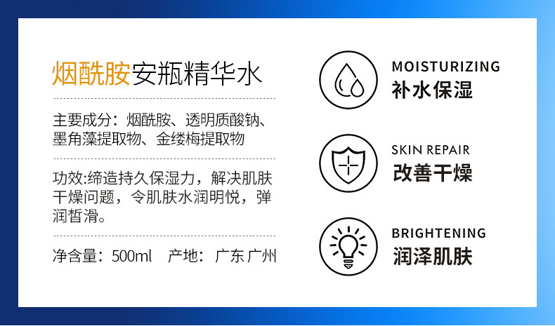 Yazhi Бутылка с гиалуроновой кислотой Эссенция Вода сокращает поры Ниацинамид Увлажняющий тонер Уход за кожей Оригинальные товары Оптовая продажа
