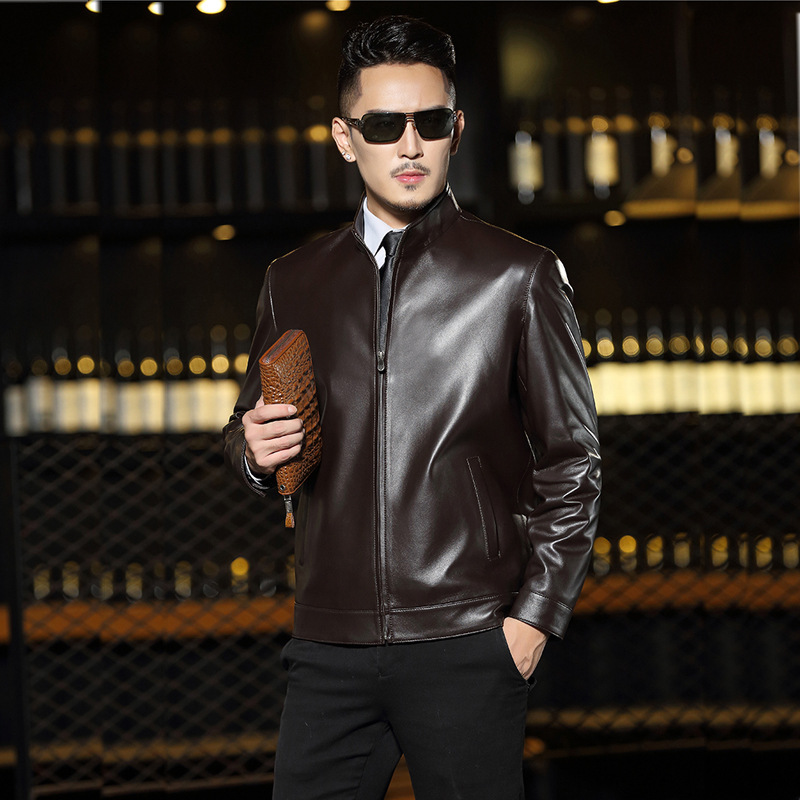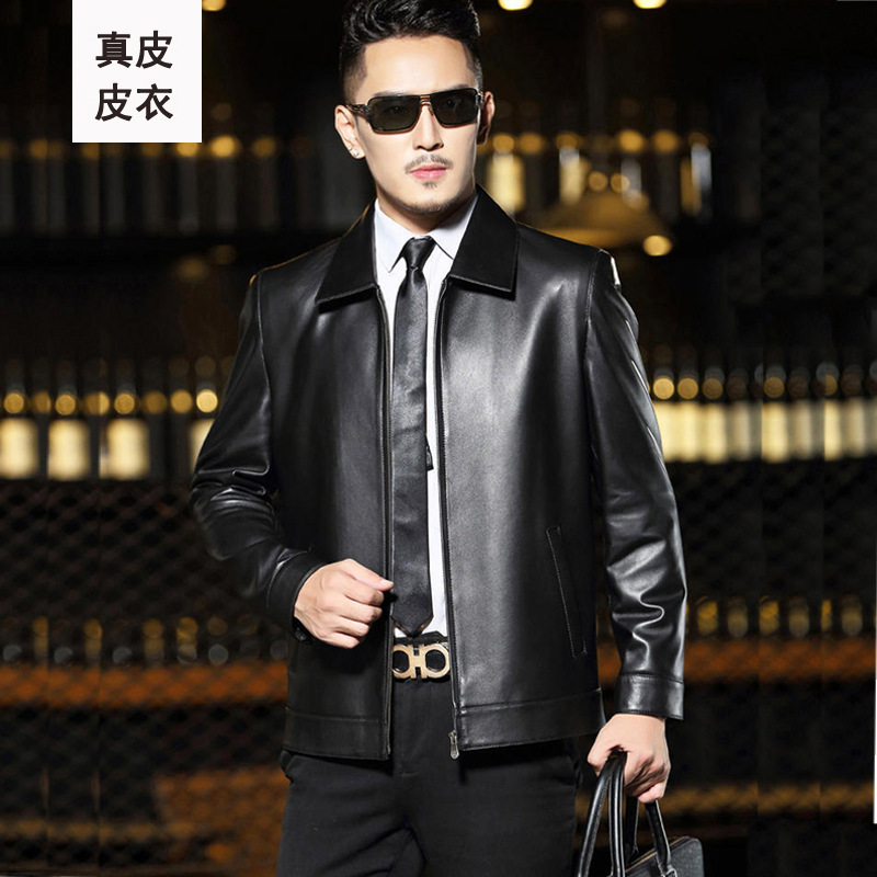 2025 Haining весна и осень новая кожаная кожаная одежда мужская голова слой овчины кожаная куртка папа для бизнеса повседневная куртка