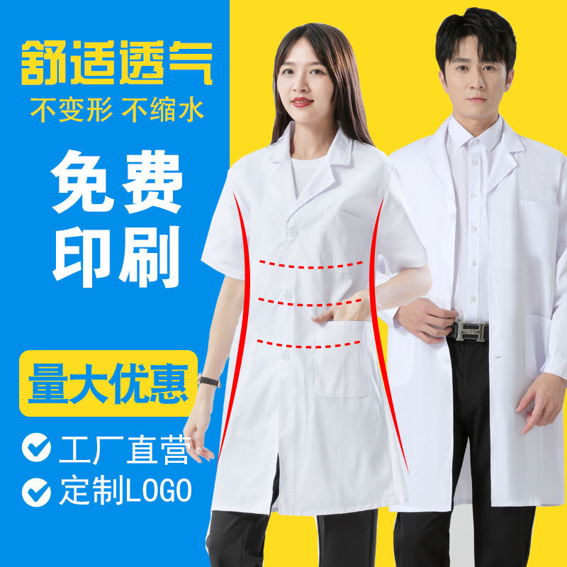 Белое пальто с длинным рукавом врачебная одежда аптека студент лаборатории пальто с коротким рукавом Пищевая Фабрика салон красоты медсестра рабочая одежда печать