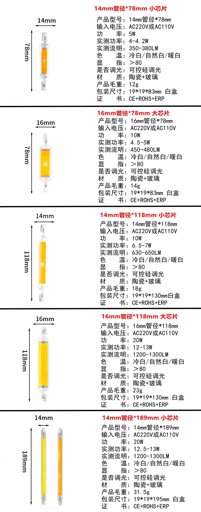 Трубка 78 мм * 14 мм 5 Вт (1 упаковка); Выделите трубку 78 мм * 16 мм 10 Вт (1 упаковка); Трубка 118 мм * 14 мм 10 Вт (1 упаковка); Выделите трубку 118 мм * 16 мм 20 Вт (1 упаковка); Трубка 189 мм * 14 мм 20 Вт (1 упаковка); Трубка 78 мм * 14 мм 5 Вт (2 упаковки); Выделите трубку 78 мм * 16 мм 10 Вт (2 упаковки); Трубка 118 мм * 14 мм 10 Вт (2 шт. в упаковке); Выделите трубку 118 мм * 16 мм 20 Вт (2 шт. в упаковке); Трубка 78 мм * 14 мм 5 Вт (4 шт.); Выделите трубку 78 мм * 16 мм 10 Вт (4 шт.); Трубка 118 мм * 14 мм 10 Вт (4 упаковки); Выделите трубку 118 мм * 16 мм 20 Вт (4 шт.)