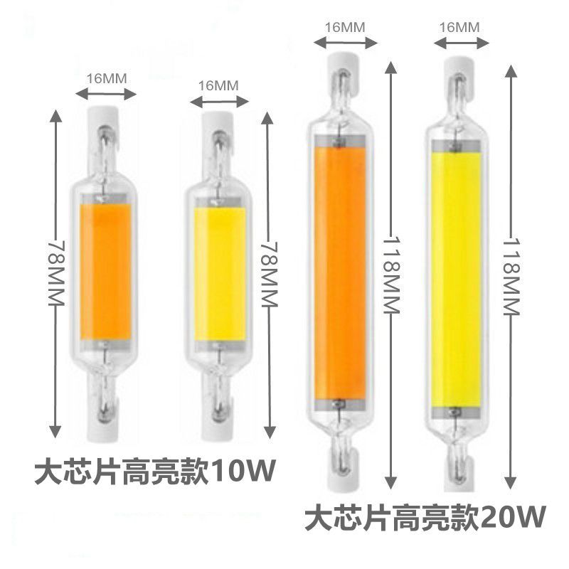 R7S стеклянная лампа с затемнением LEDCOB78mm118mm189 двусторонняя лампа с горизонтальной вилкой, замена галогенной лампы 220V110