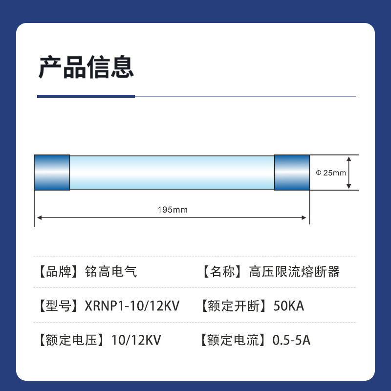 Высоковольтный предохранитель Ming с высокой емкостью секции, ограничивающий ток XRNP1-10/12KV0.5A/1A/2A, Заводская розетка