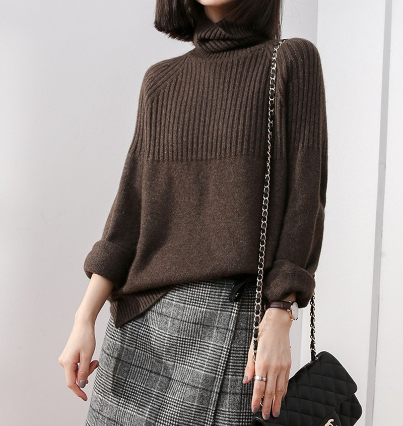 2023 осенне-зимний свитер с черепаховым воротником, Женский Элегантный ленивый Свободный пуловер в стиле ретро из Южной Кореи, топ, шерстяная вязаная Базовая рубашка