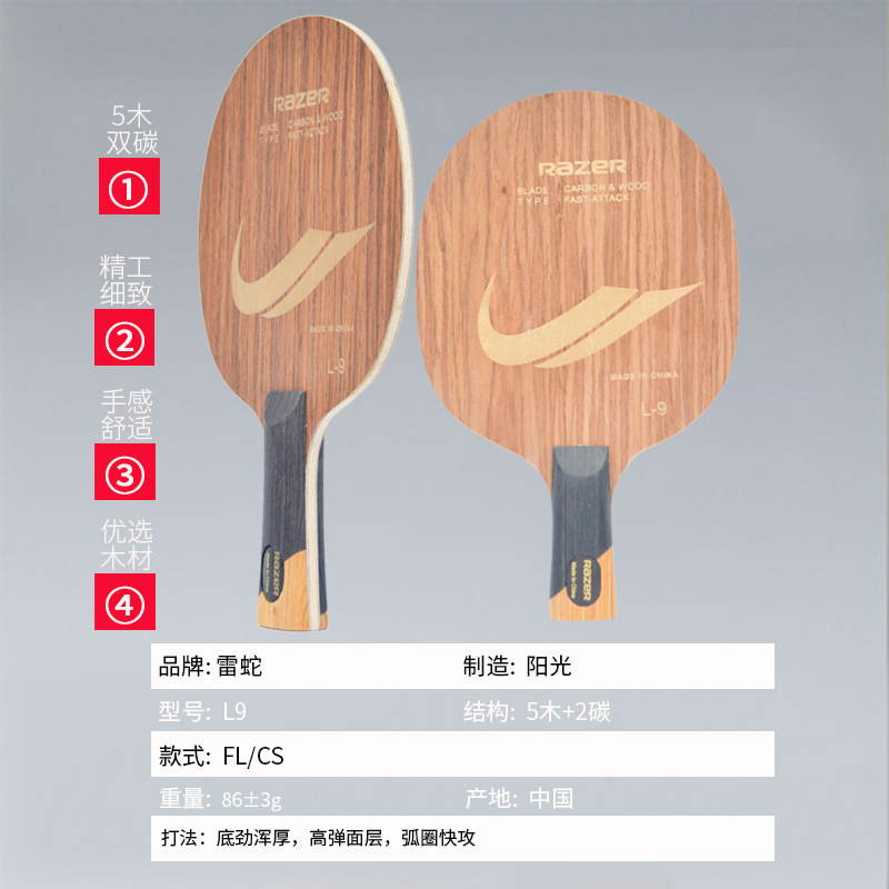 RAZER L-9 Опорная пластина Carbon L9 Ракетка для настольного тенниса Опорная пластина Двойная карбоновая опорная ракетка Наступательная ракетка Горизонтальная ракетка Прямая ракетка