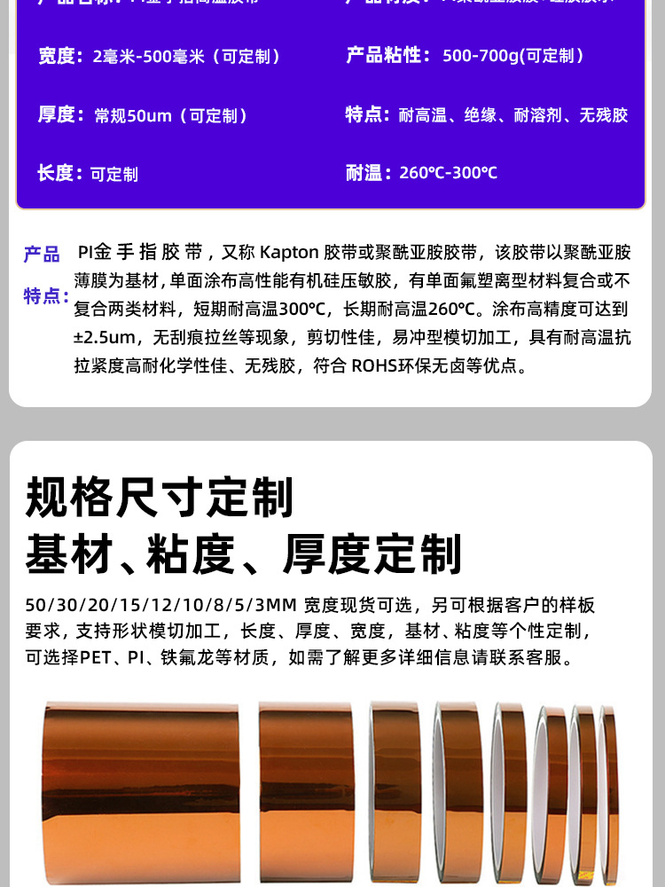 Оптовая Продажа с фабрики Золотая лента для пальцев Pi Tan высоковязкая огнестойкая неостаточная изоляционная полиимидная высокотемпературная лента