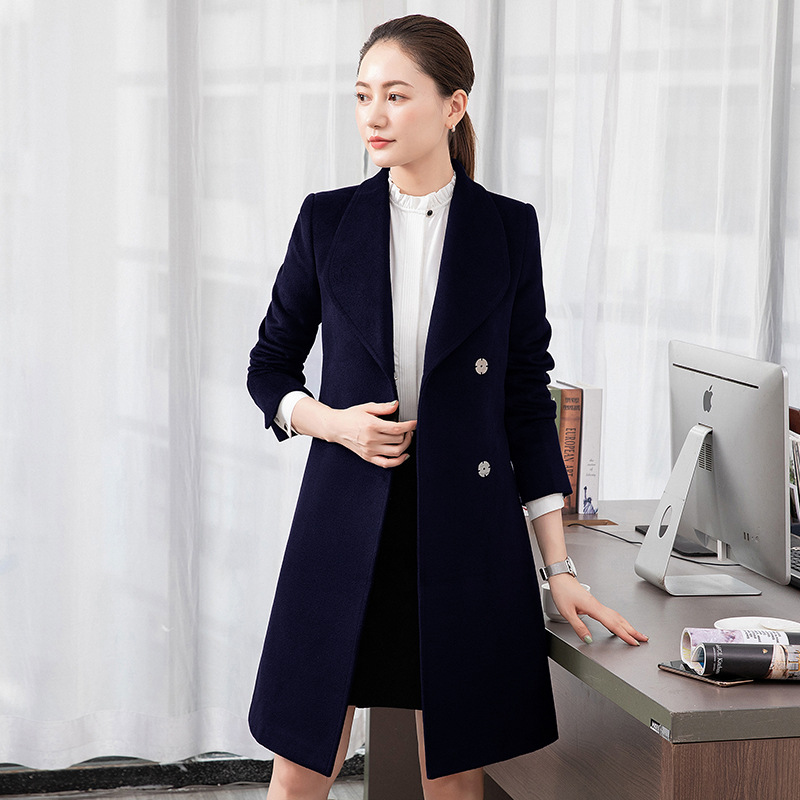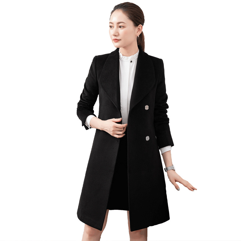 Деловая одежда Шерстяное пальто Комбинезоны Женское зимнее приталенное шерстяное пальто большого размера с узкой талией и длинным коленом на стойке регистрации отеля