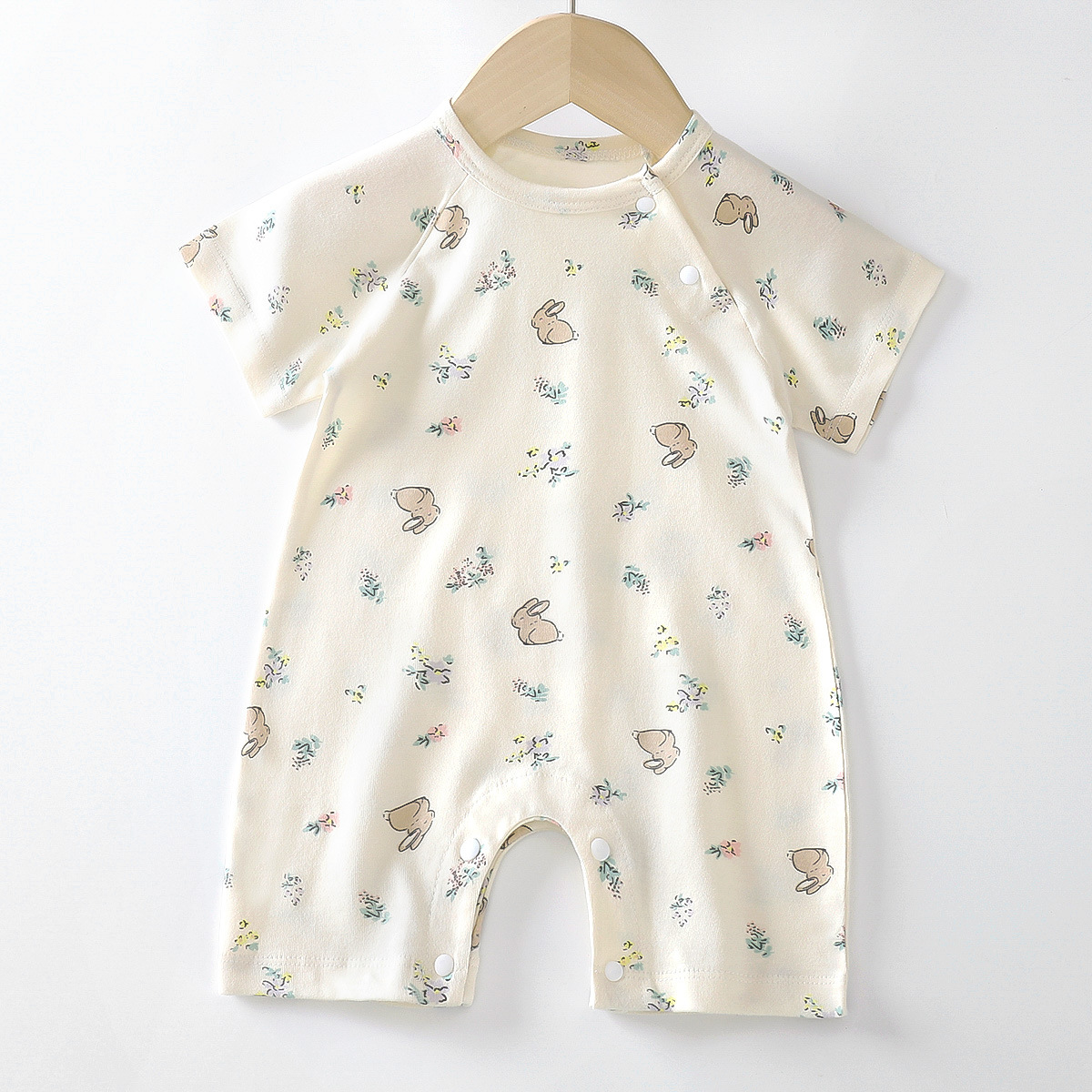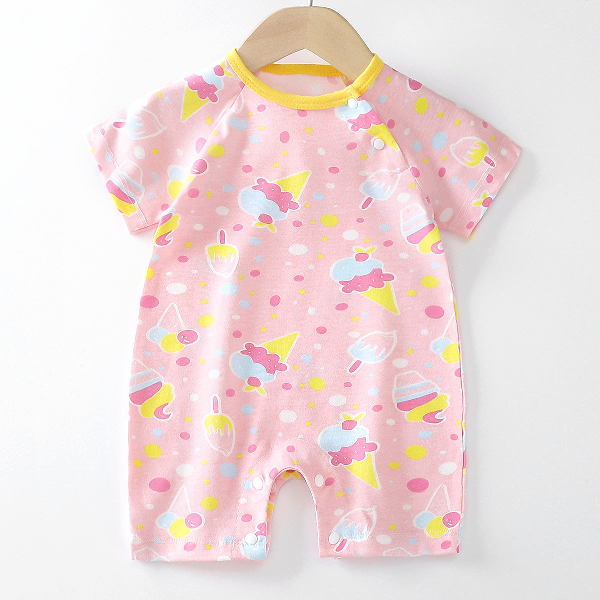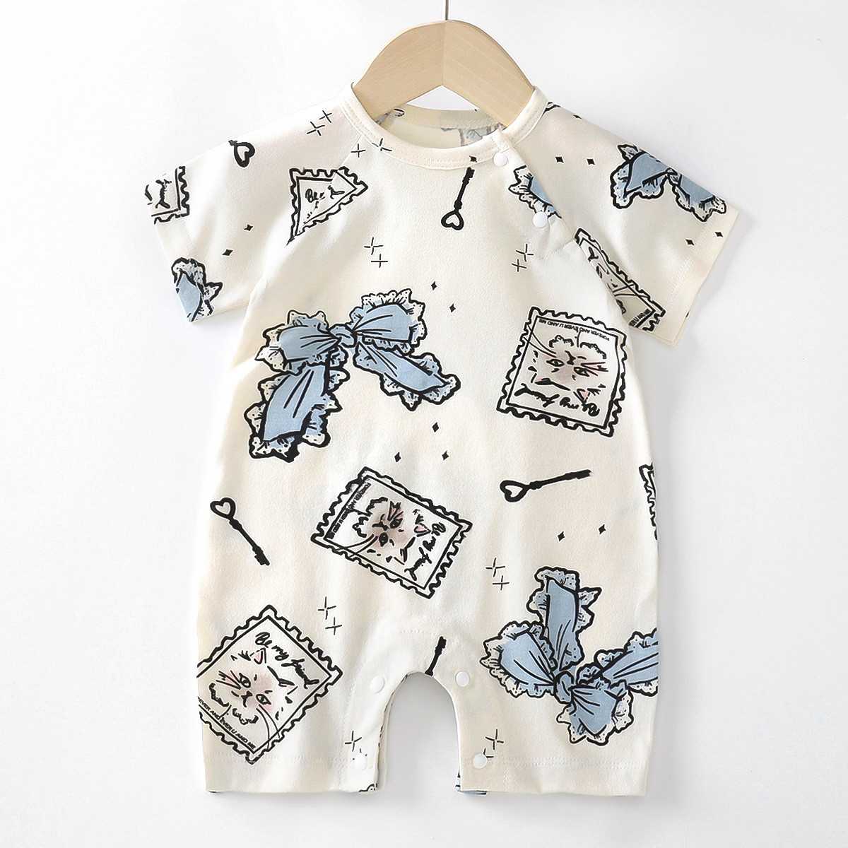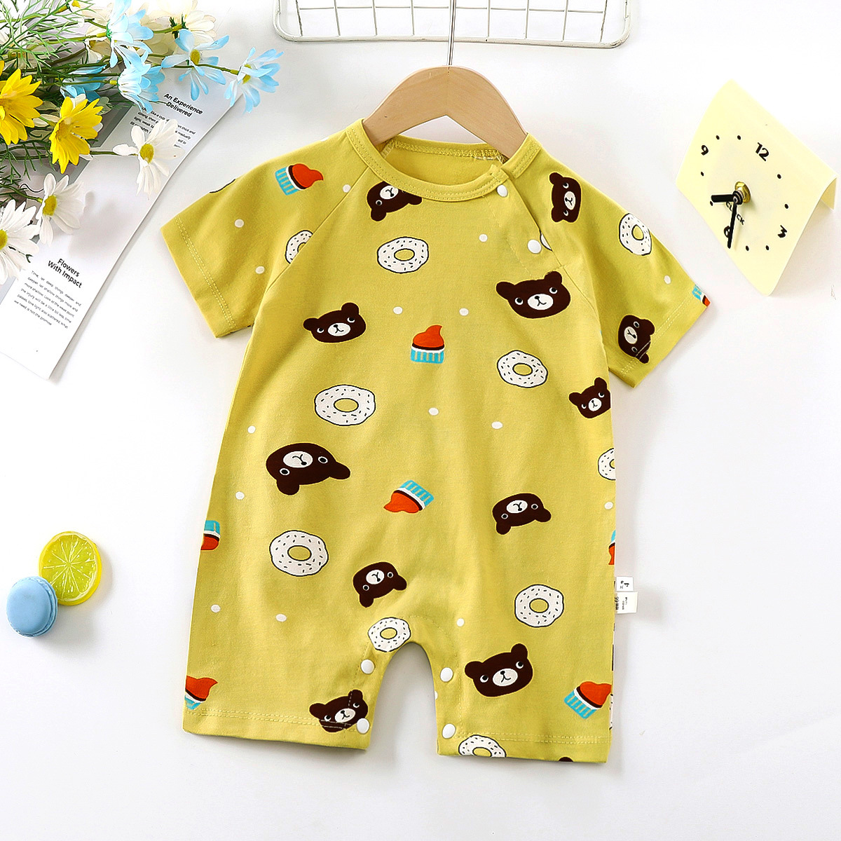 Новая летняя одежда, детский цельный комбинезон для новорожденных, хлопковый тонкий комбинезон с короткими рукавами и открытым концом
