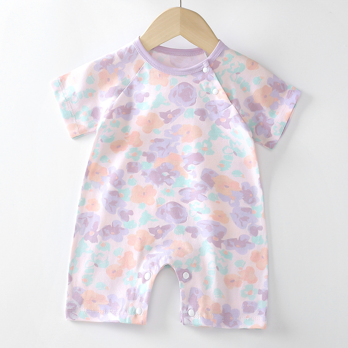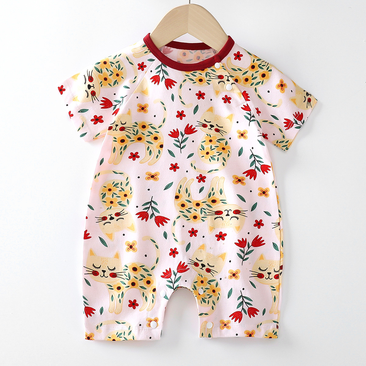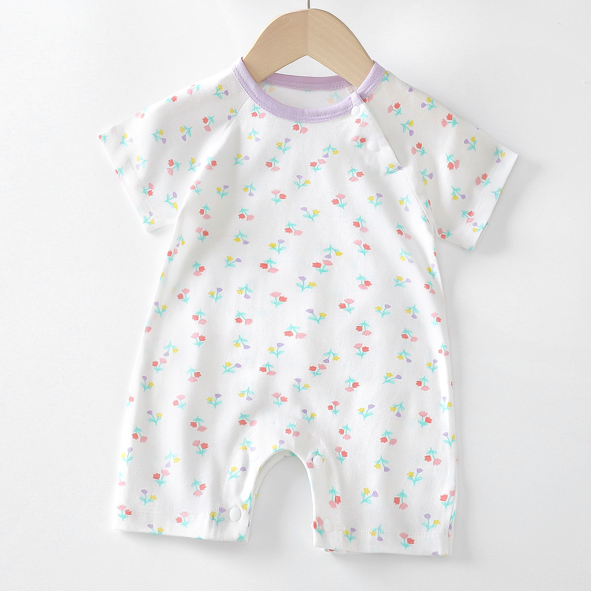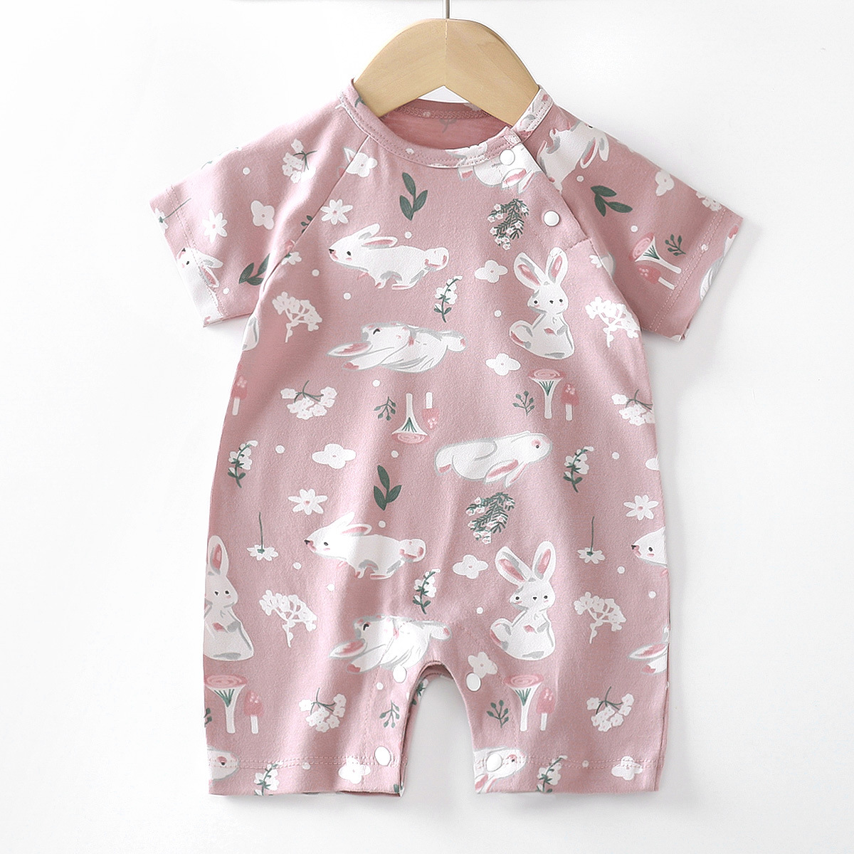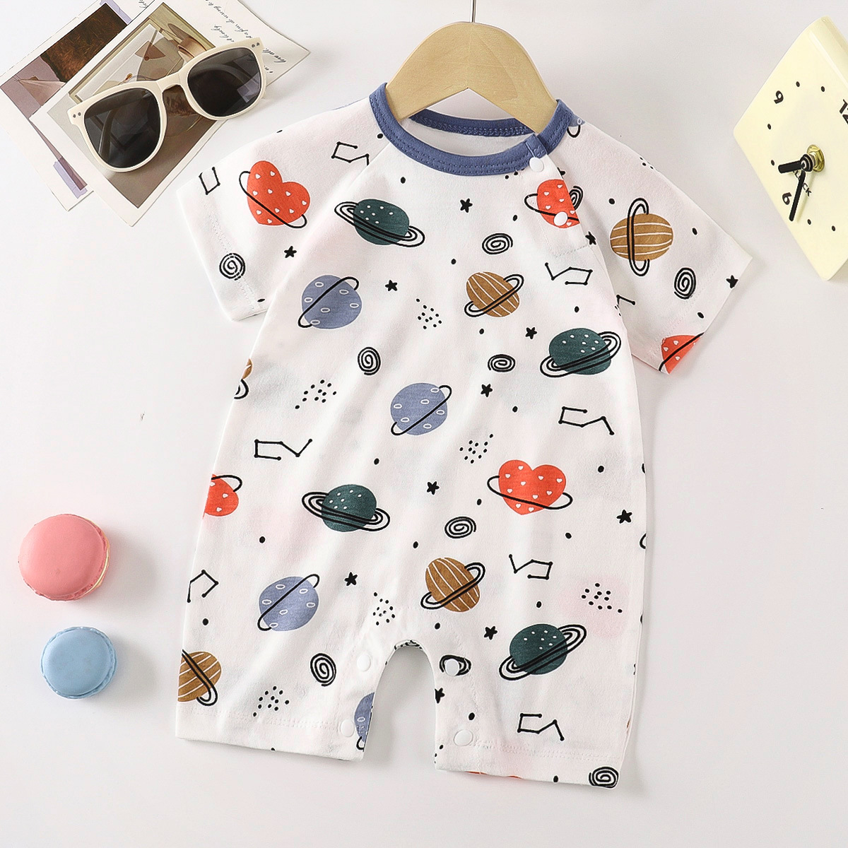 Новая летняя одежда, детский цельный комбинезон для новорожденных, хлопковый тонкий комбинезон с короткими рукавами и открытым концом