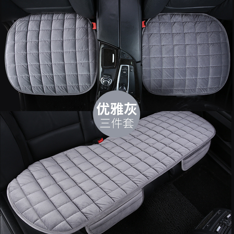 Подушка для автомобильного сиденья, зимняя трехкомпонентная цельная плюшевая подушка для переднего сиденья с открытой спиной, Нескользящие Бесплатные автомобильные принадлежности-Квадратная