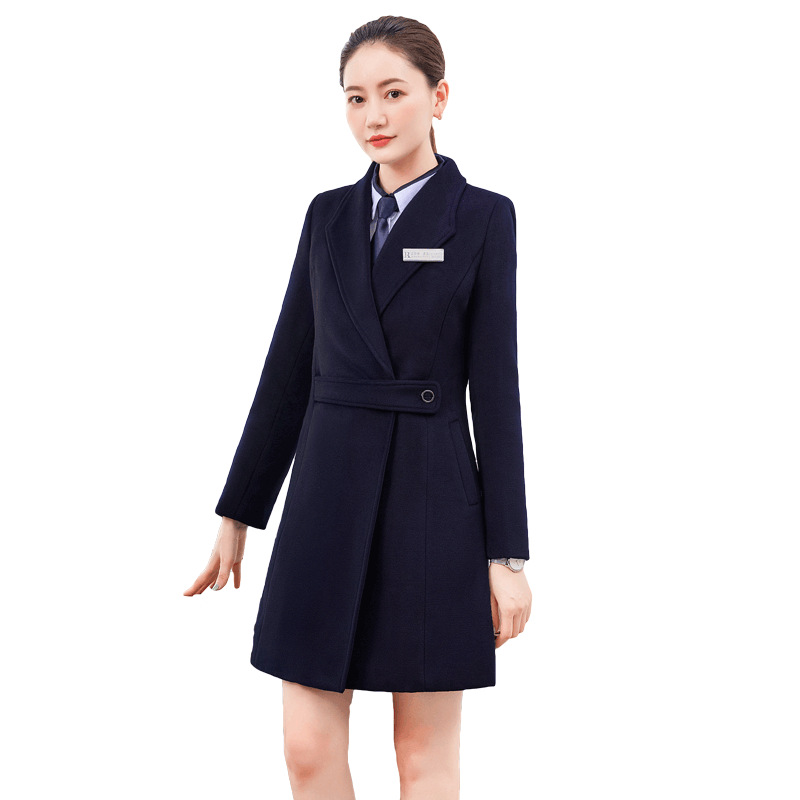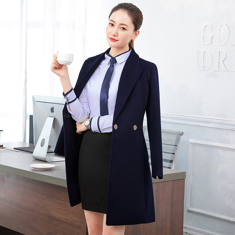 Деловая одежда Шерстяное пальто Длинное черное почтовое оборудование Отдел продаж Рабочая одежда Шерстяное пальто Женское зимнее утепленное