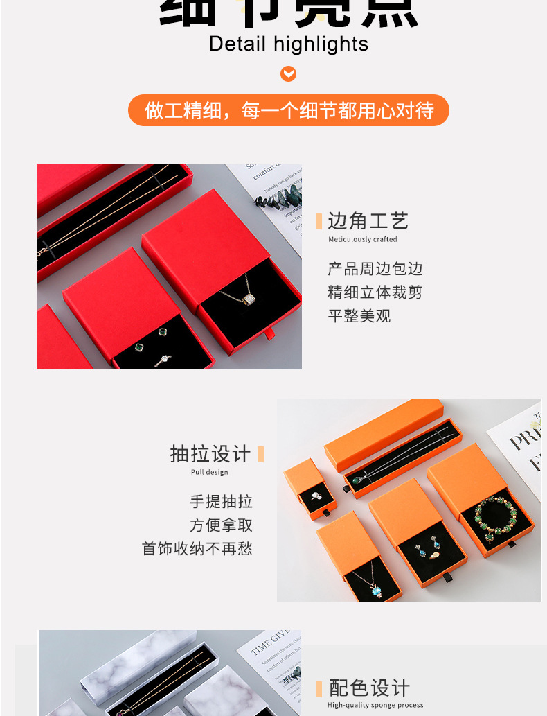 Готовый ящик для упаковки ювелирных изделий, простая шкатулка для драгоценностей, браслет, кольцо, браслет, кулон, выдвижная коробка, коробка для хранения