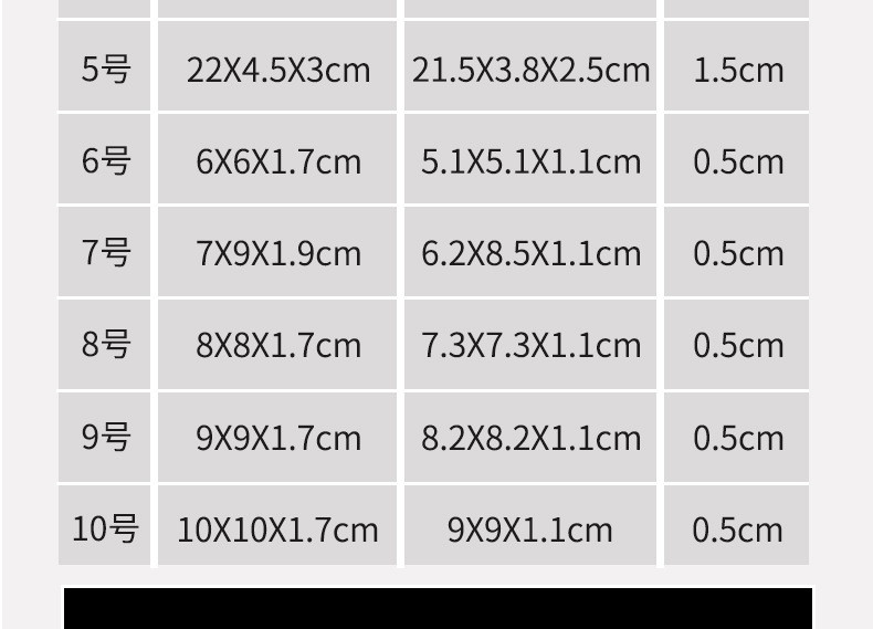No 6х6х1,7 см; No 1 5X5X3,5 см; No 2 7Х9Х3см; No 3 9X9X3см; No4 10X10X3,5 см; No 5 22X4,5X3см; No 9X9X1,7 см; No 10 10Х10Х1,7см; No 7х9х1,7 см; No 8 8X8X1,7 см