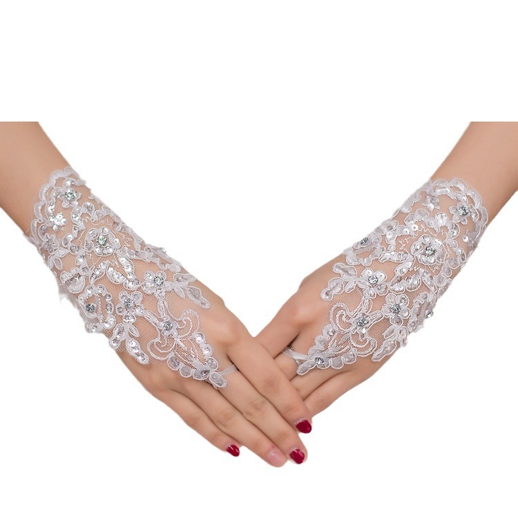 Свадебные перчатки белые красные короткие кружева с бриллиантами свадебный инструмент Чонсам тост платье перчатки для выступлений оптом 1009