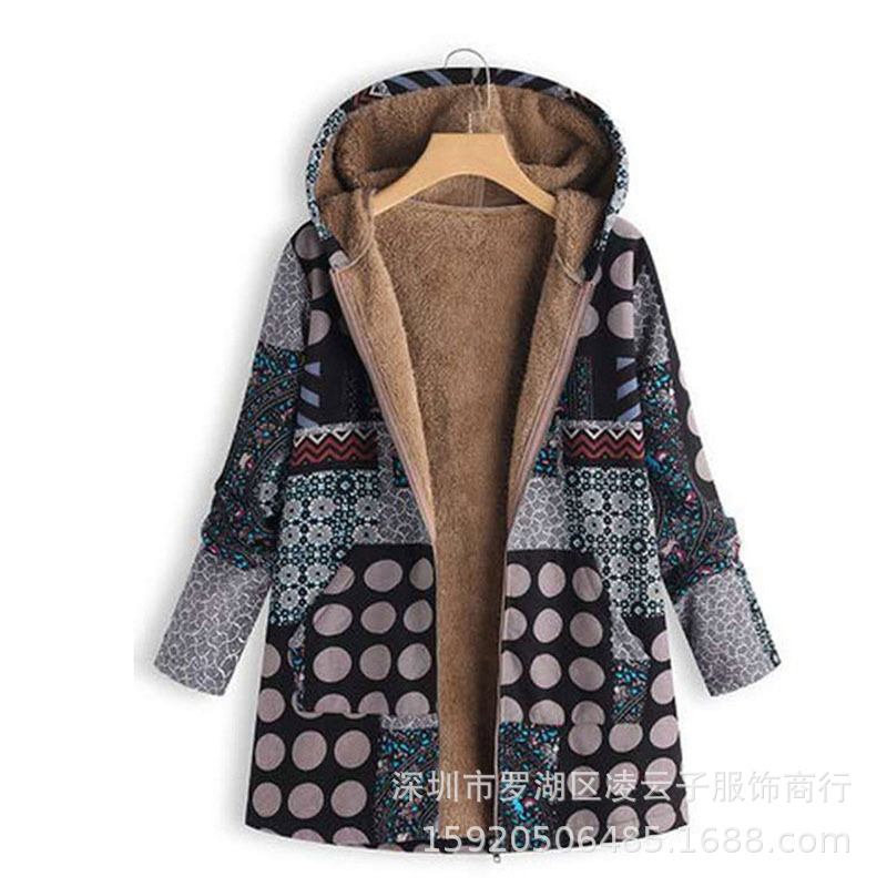 Европейская и американская женская зимняя пушистая ретро-хлопковая льняная куртка с капюшоном на молнии