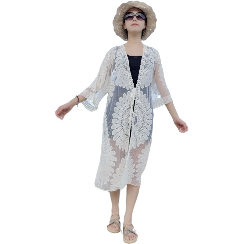 2024 Amazon трансграничная Европейская и американская Солнцезащитная одежда полый кружевной кардиган бикини блузка внешний купальник пальто для женщин