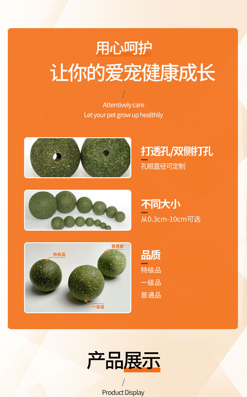 Шарики из кошачьей мяты (обычные, без дырочек); Шарики из кошачьей мяты (обычный продукт с отверстиями с обеих сторон); Шарики из кошачьей мяты (обычные с перфорациями); Шарики из кошачьей мяты (первоклассная продукция без дырочек); Шарики из кошачьей мяты (первоклассный продукт с отверстиями с обеих сторон); Шарики из кошачьей мяты (первоклассный продукт с перфорациями); Шарики из кошачьей мяты (специальные изделия без дырок); Шарики из кошачьей мяты (специальный продукт с отверстиями с обеих сторон); Шарики из кошачьей мяты (специальный сорт с перфорацией)