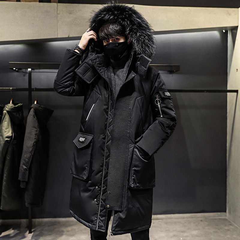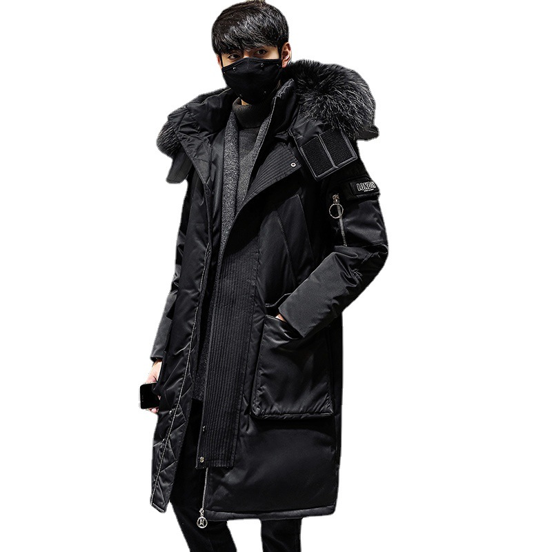 Новинка 2025 года, пуховик средней длины с большим меховым воротником, мужская утолщенная теплая зимняя куртка выше колена с несколькими карманами для внешней торговли