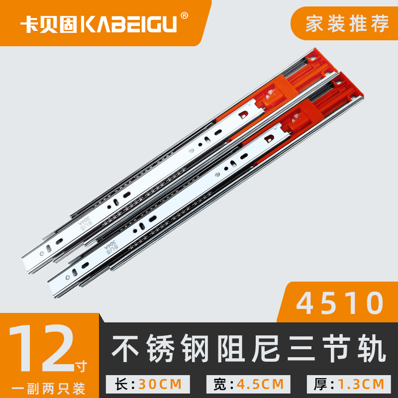 304 направляющая для ящика из нержавеющей стали, трехсекционная направляющая, утолщенная немой демпфирующий буфер, направляющая для шкафа, оптовая продажа