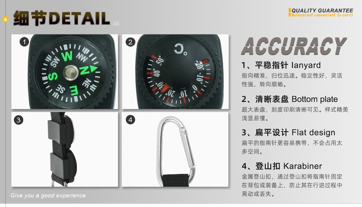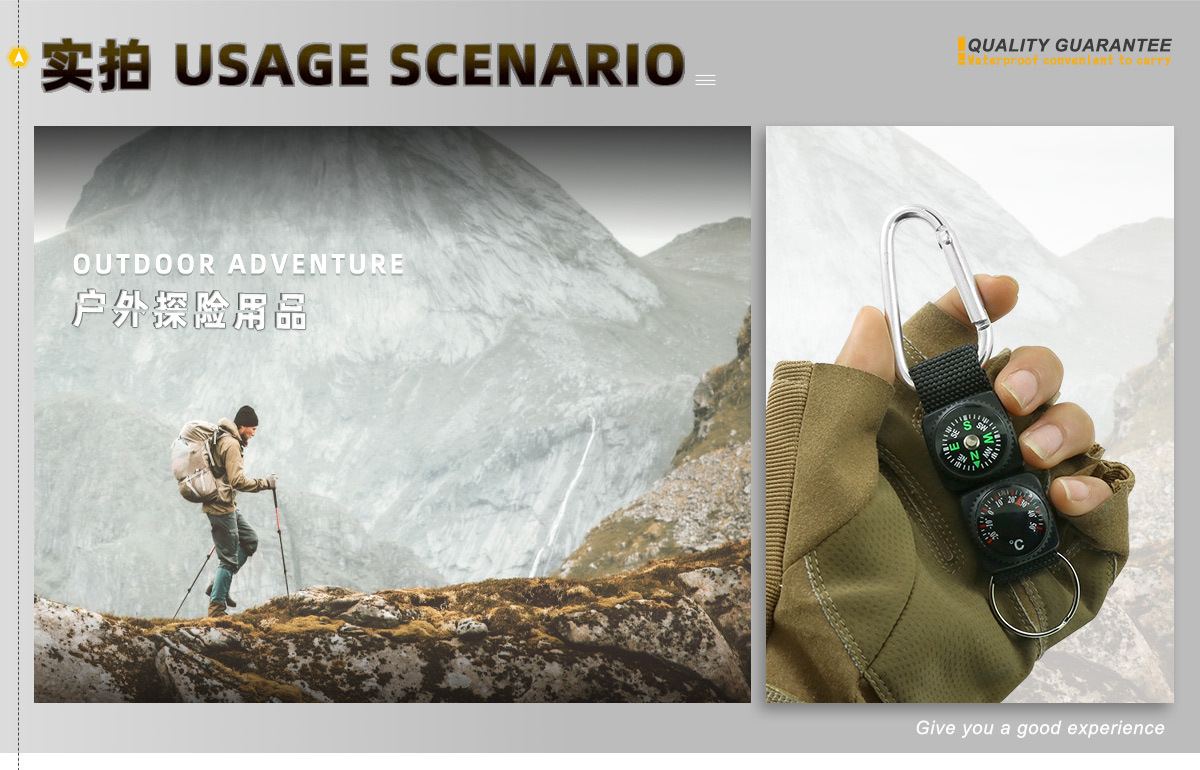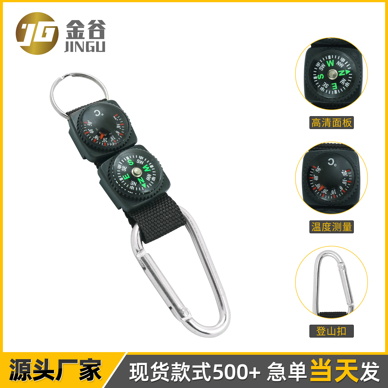 Многофункциональный компас-карабин от производителя с термометром, шнурком и брелком, в наличии