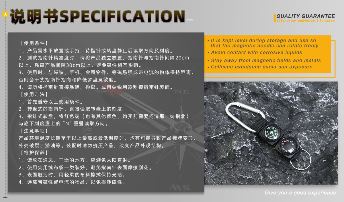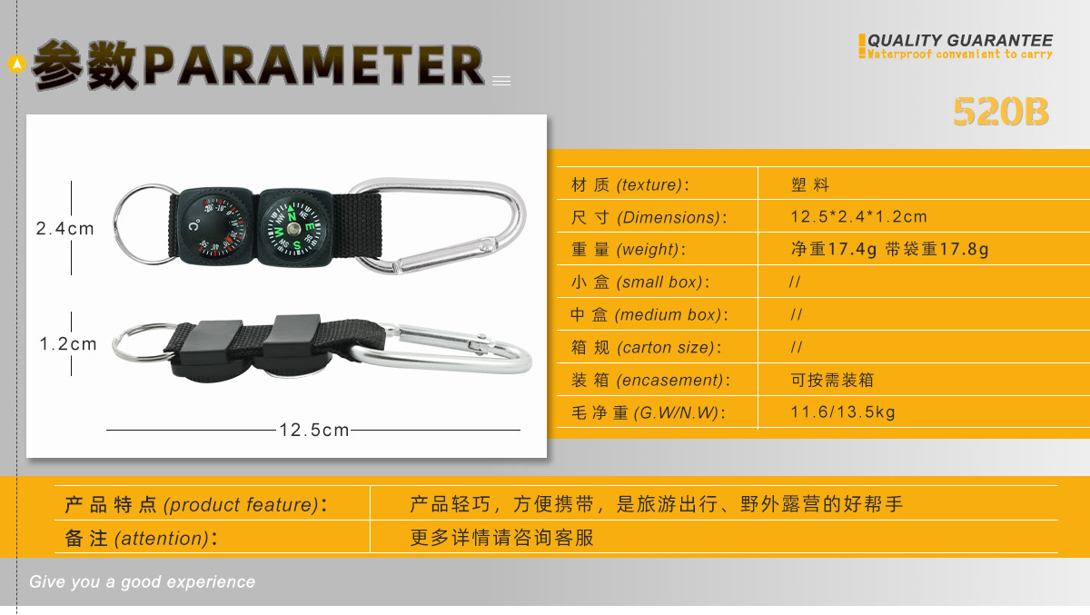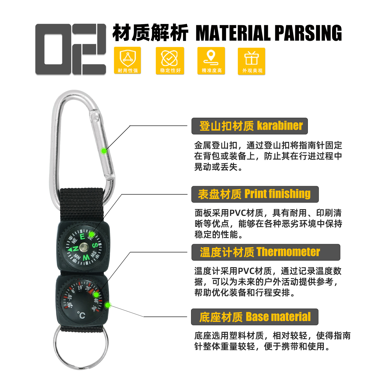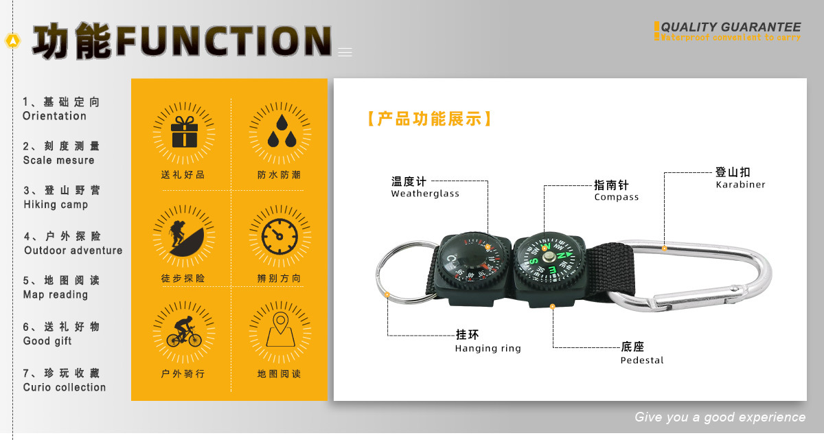 Многофункциональный компас-карабин от производителя с термометром, шнурком и брелком, в наличии