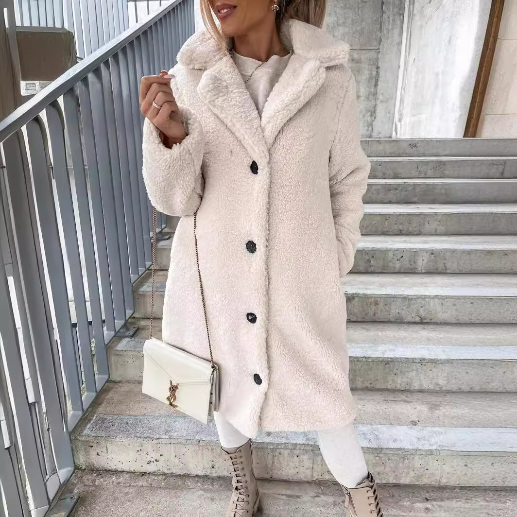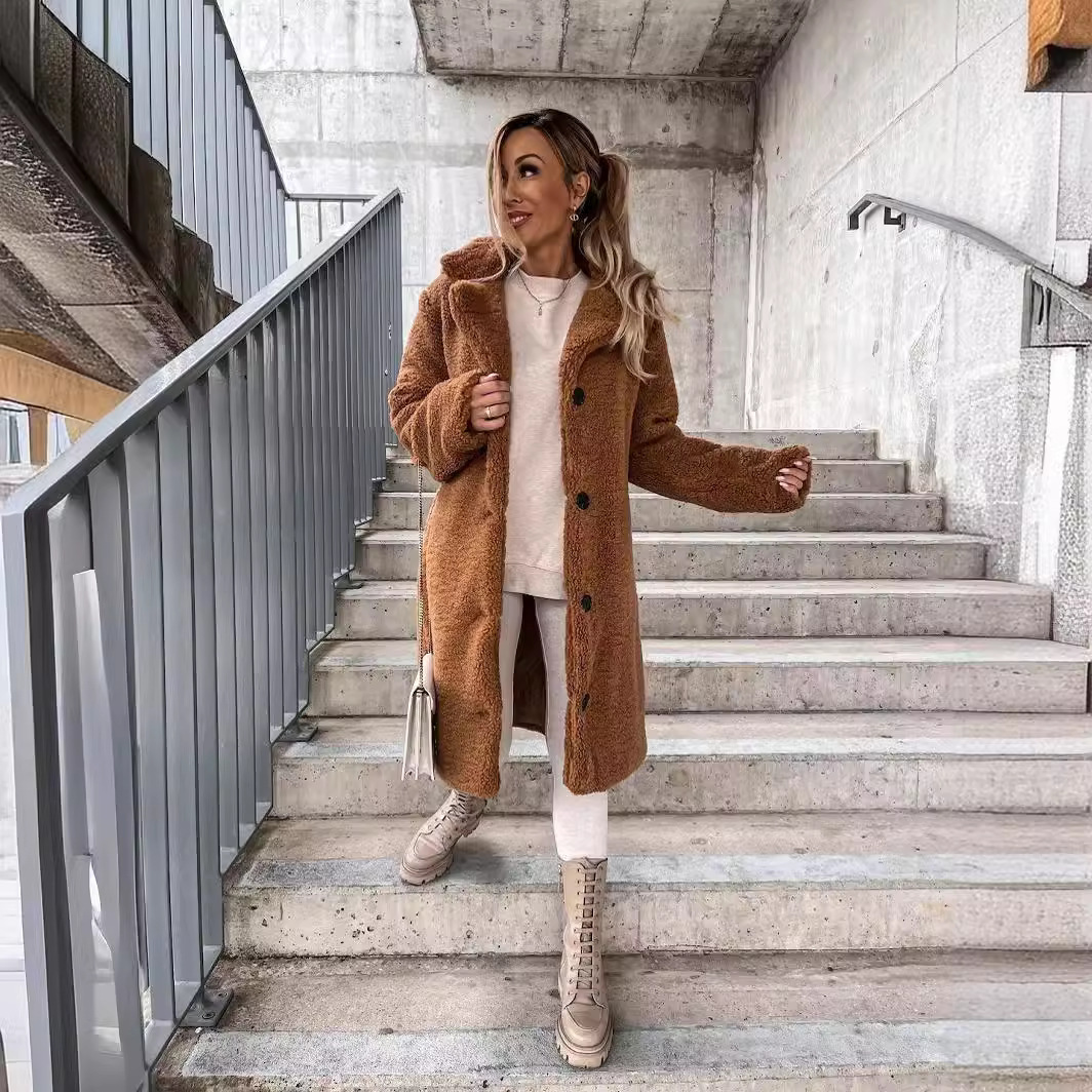 Amazon 2024, осенне-зимняя европейская и американская трансграничная женская одежда, популярная плюшевая женская плюшевая верхняя одежда с длинными рукавами и лацканами