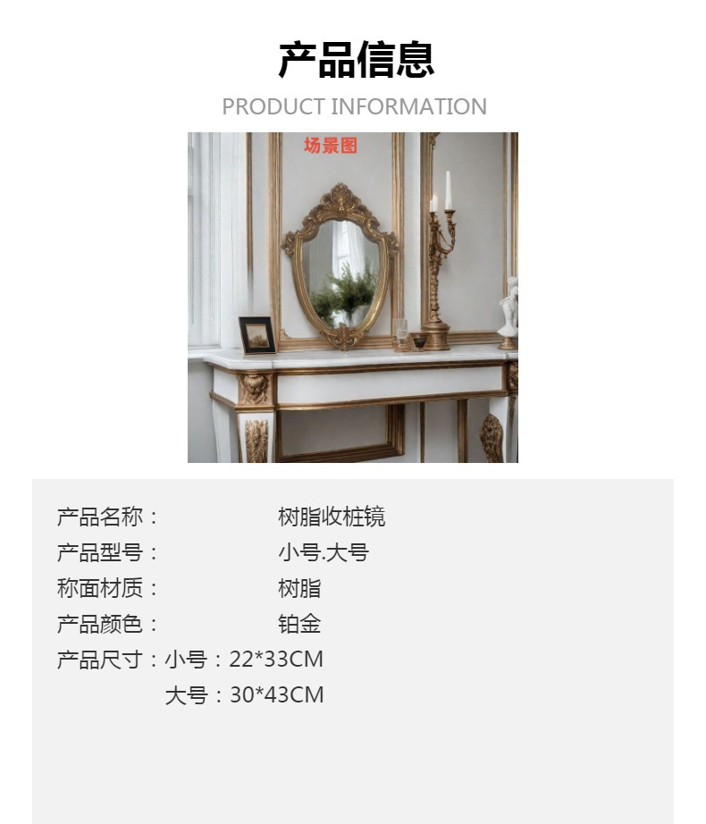 Внутренний диаметр маленького зеркала 16*22 Внешний диаметр 22*33CM; Короткая фоторамка: Внутренний диаметр: 16*22 Внешний диаметр: 22*33CM; Зеркало большого размера: Внутренний диаметр: 19,5*28 Внешний диаметр 30*43