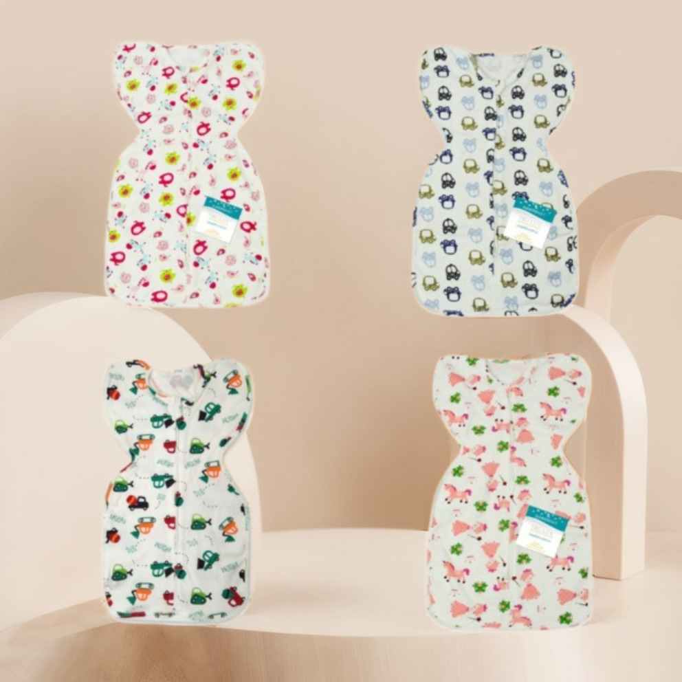 特点:蝶式襁褓,投降式睡袋,暗扣开袖设计,防惊跳,纯棉柔软舒适