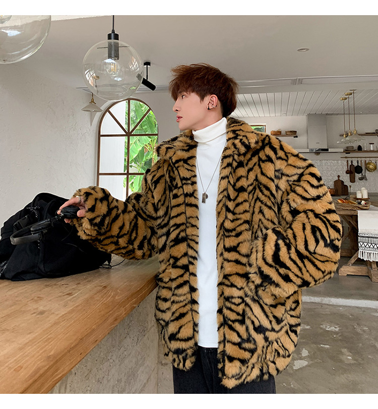 Куртка в американском стиле в стиле ретро, свободная в стиле BF, с мехом из искусственного меха, мужская с тигровым леопардовым принтом, в стиле Харадзюку, Южная Корея
