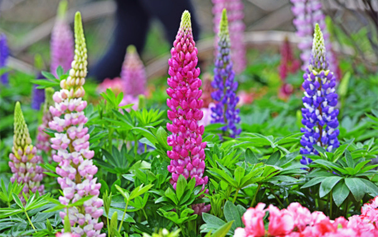 羽扇豆俗称鲁冰花,为豆科羽扇豆属,原产北差西部。多年生草本,掌状复叶,花色丰富艳丽,园艺栽培品种较多。羽扇豆特别的植株形态和丰富的花序颜色,是园林植物造景中较为难得的配置材料,用作花境背景或在林缘河边丛植、片植会给视觉一种别样享受。