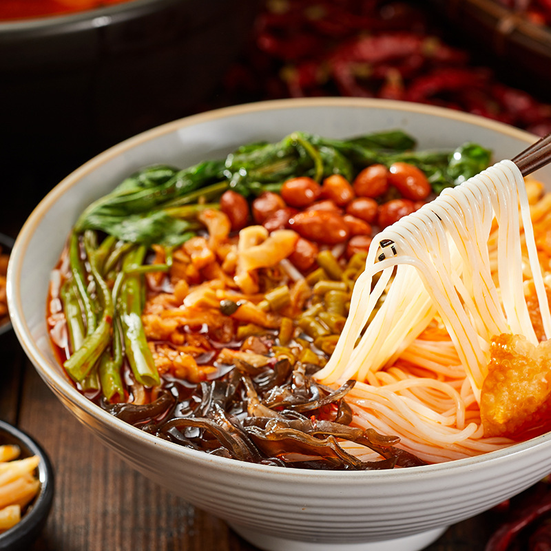 Мука рисовая сухая, пакет суповой рассол, фасоль Кислая, грибы черные, пакет ингредиентов редиса сушеные, пакет ингредиентов побегов бамбука кислые