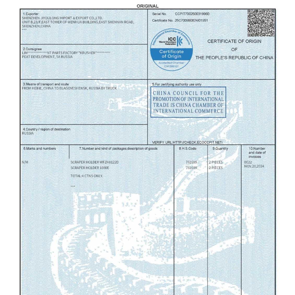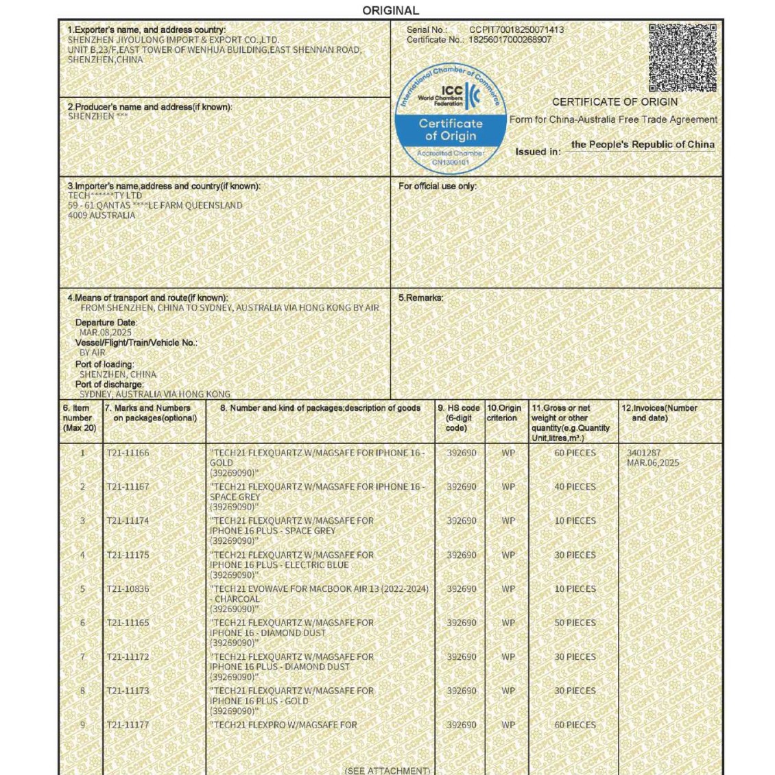Сертификат происхождения Китай-Чили (форма FFF), сертификат происхождения Китай-Чили, сертификат преференциального таможенного оформления (агентство, форма F)