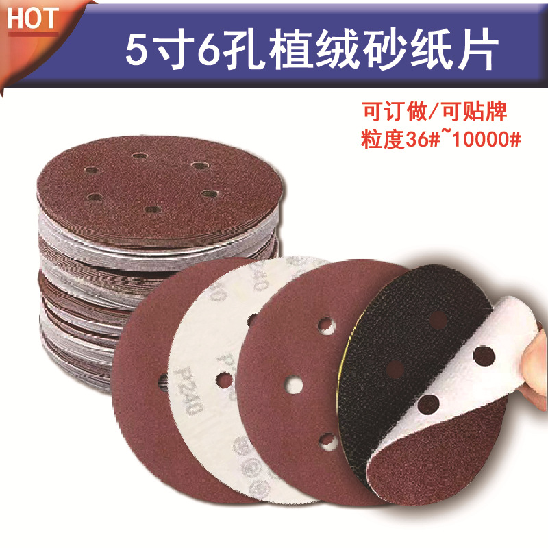 Трансграничная электронная коммерция 5-дюймовая полированная красная наждачная бумага с 8 отверстиями 121 мм с отверстиями Флокированная наждачная бумага полированный корунд матовый