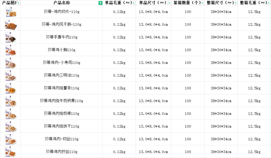 Бетти [Курица-Изрезка] 110 г; Бетти [куриная грудка] 110 г; Бетти [Ручная говядина] 110 г; Бетти [Куриный сэндвич] 110 г; Бетти [Куриные картофельные фри] 110 г; Бетти [Курица-Маленькие суши] 110г; Бетти [Курица с шелком] 110 г; Бетти [Куриная колбаса, высушенная на воздухе] 110 г; Бетти [Куриная молочная палочка] 110 г; Бетти [Курица вокруг молочной кости] 110 г; Бетти [Куриное печенье] 110 г; Бетти [Куриные ломтики] 110 г; Бетти [Шинки Бекона] 100 г