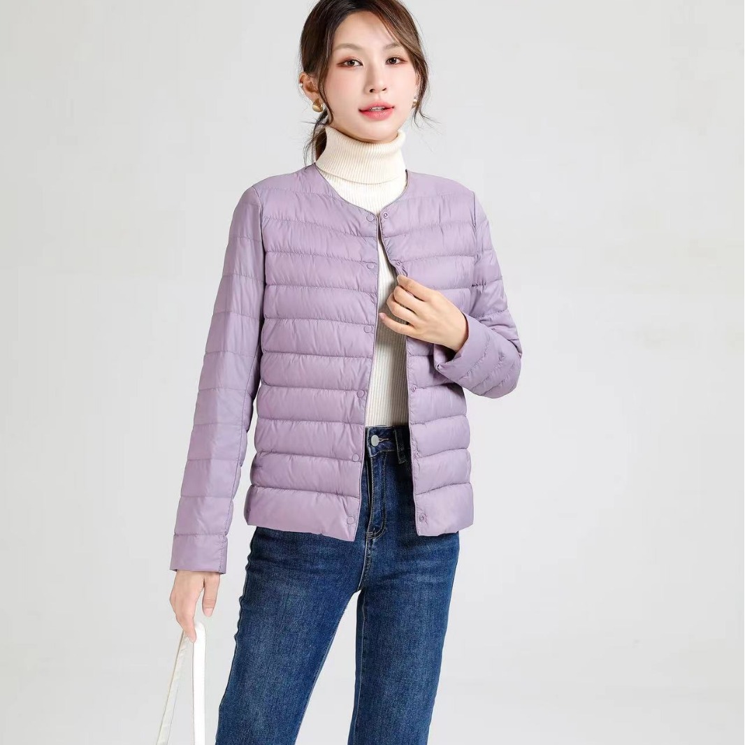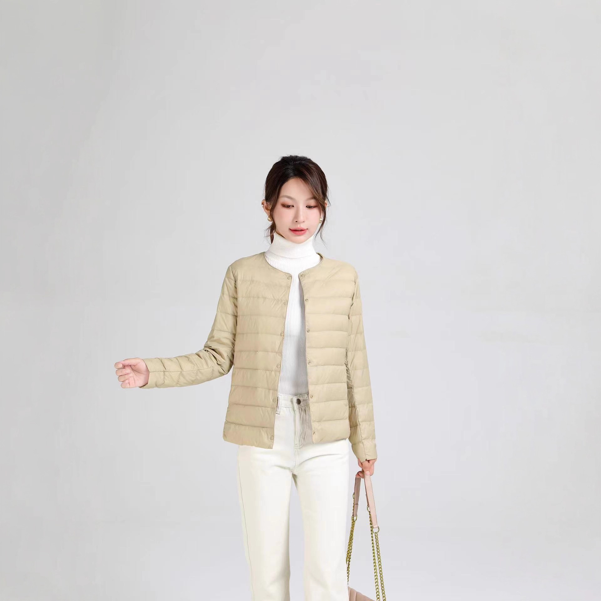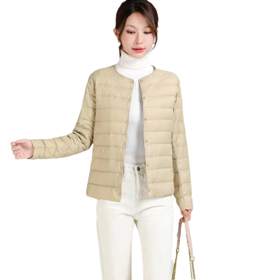 Новинка 2025, внесезонный легкий пуховик с круглым вырезом, женская теплая подкладка, короткая куртка большого размера, осенне-зимняя женская куртка без воротника