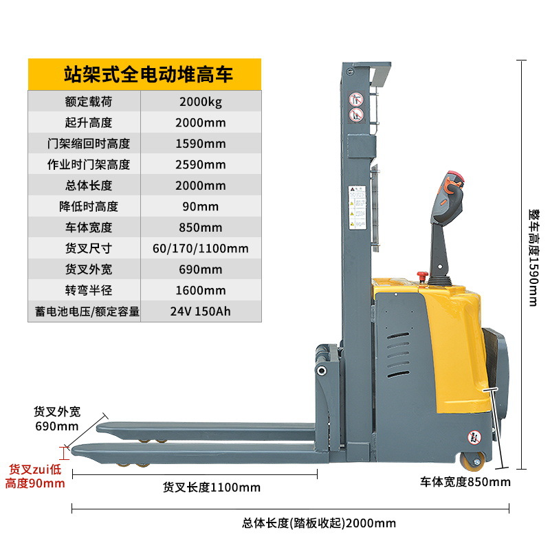 Полностью электрический штабелер 2 T станция вождения баланса противовеса Электрический вилочный погрузчик вилка аккумулятора ноги полный электрический штабелер