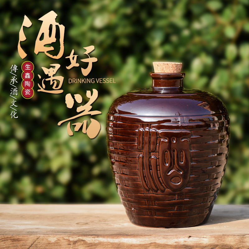 Исин винная банка 10 Цзинь бамбуковый тканый маленький рот с винным словом красная глазурь старинное красное вино белое вино керамическая винная банка
