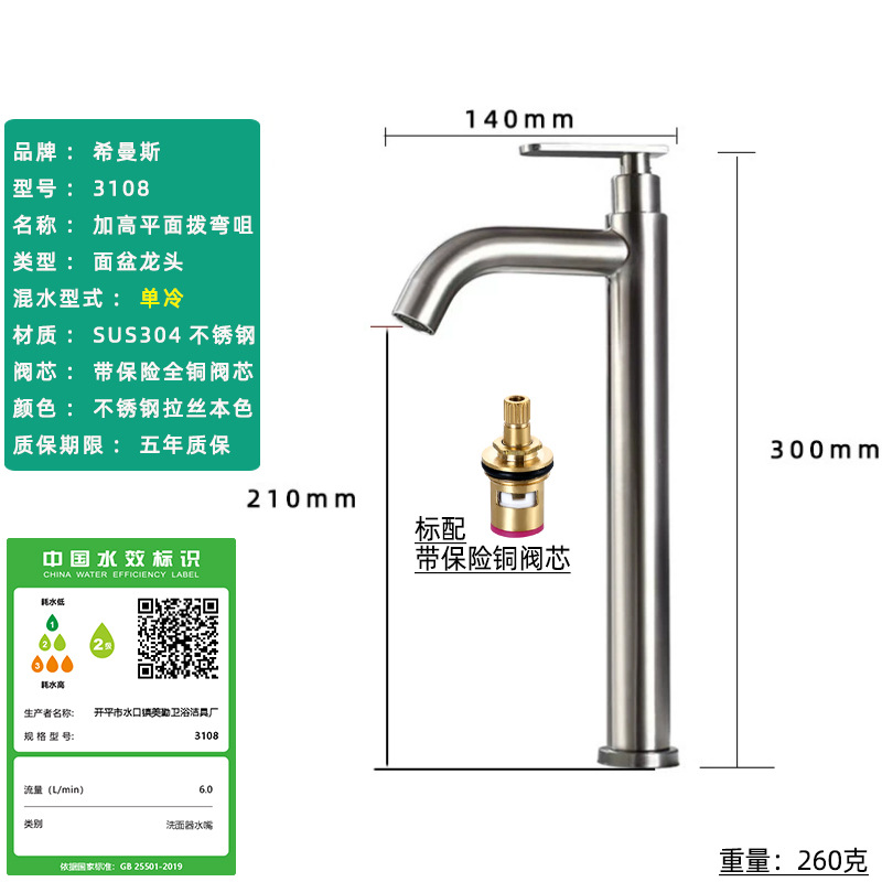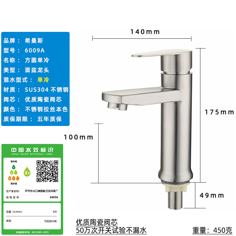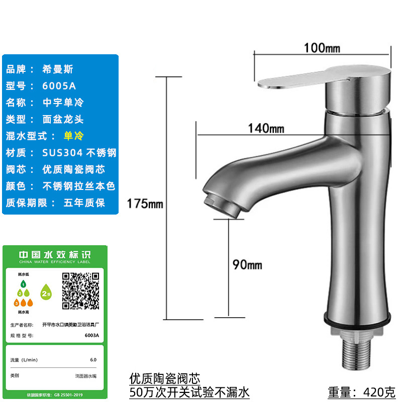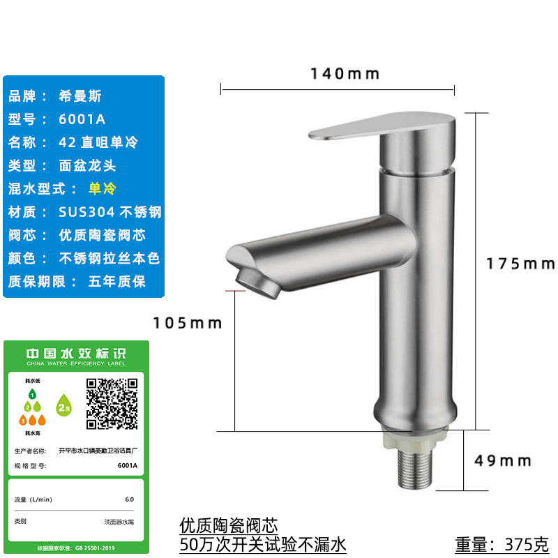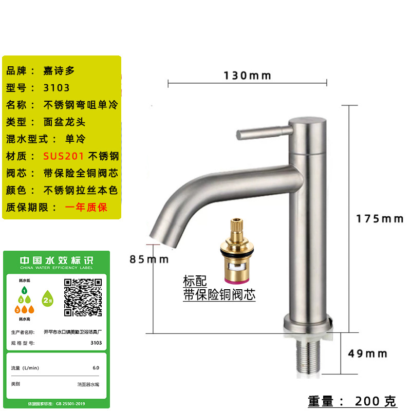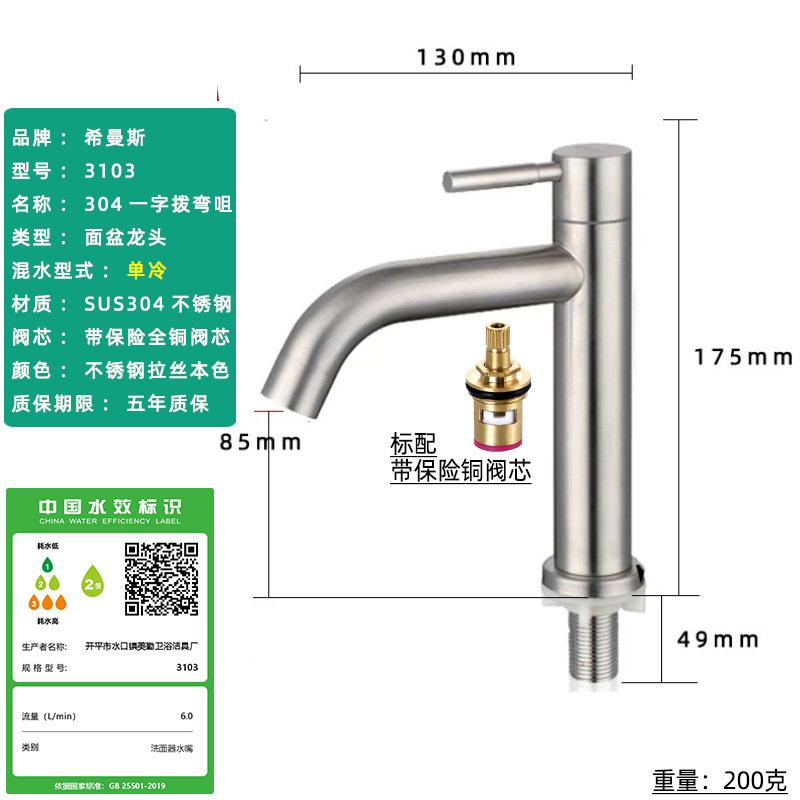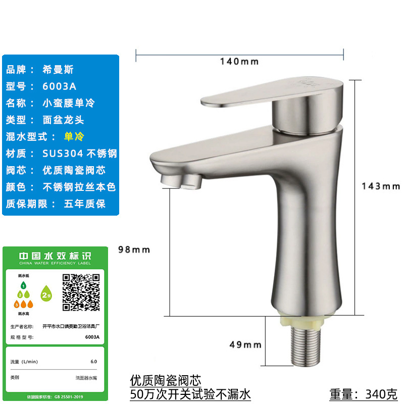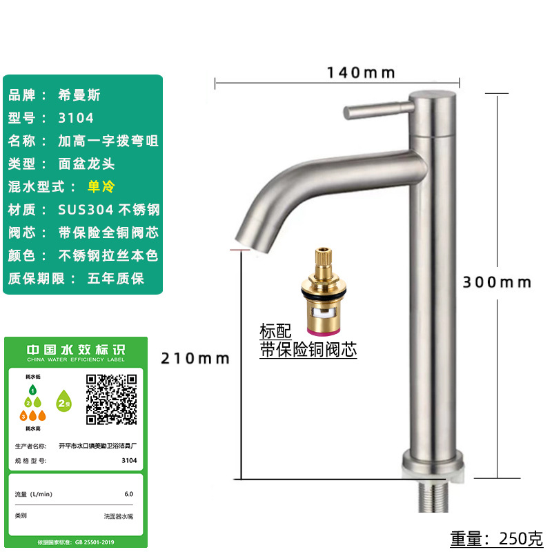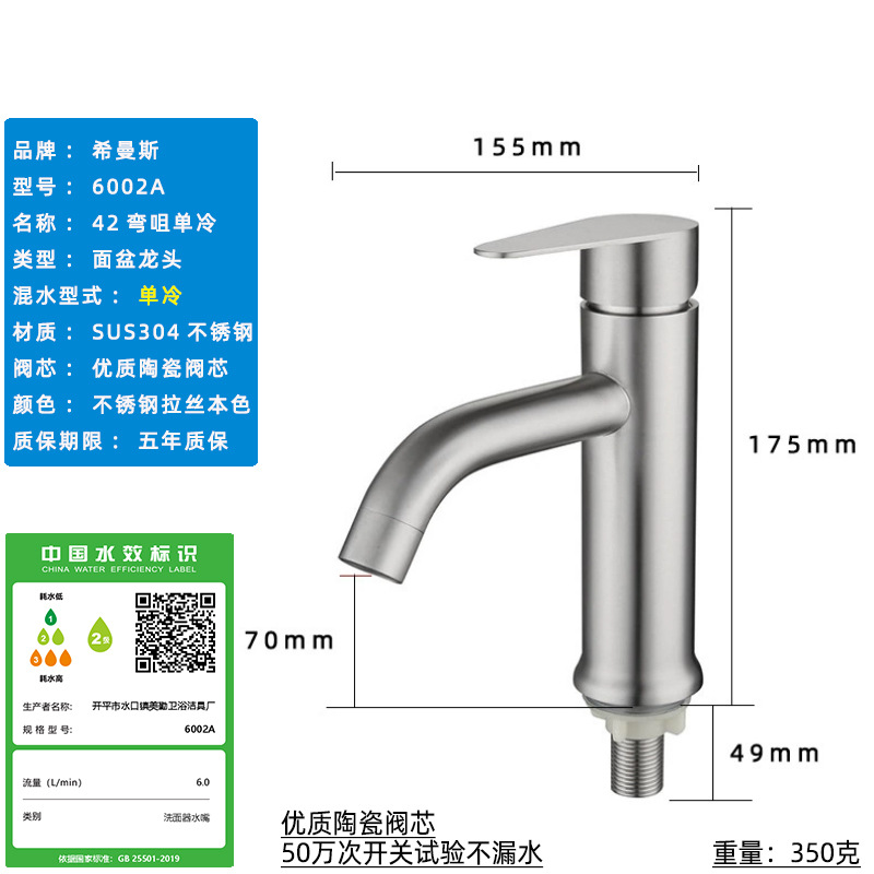 Смеситель для раковины из нержавеющей стали 304, одинарный холодный умывальник для ванной комнаты, умывальник для мытья рук, балконный умывальник, прямой излив, изогнутый излив, маленькая талия