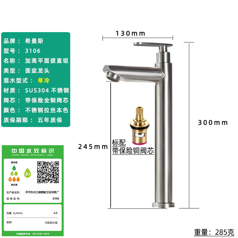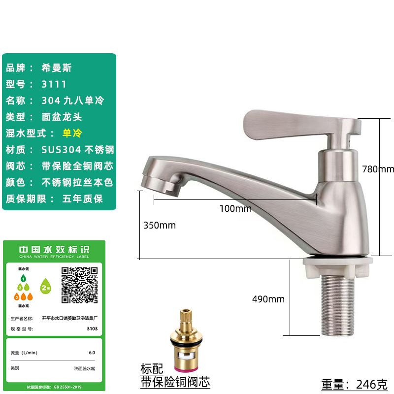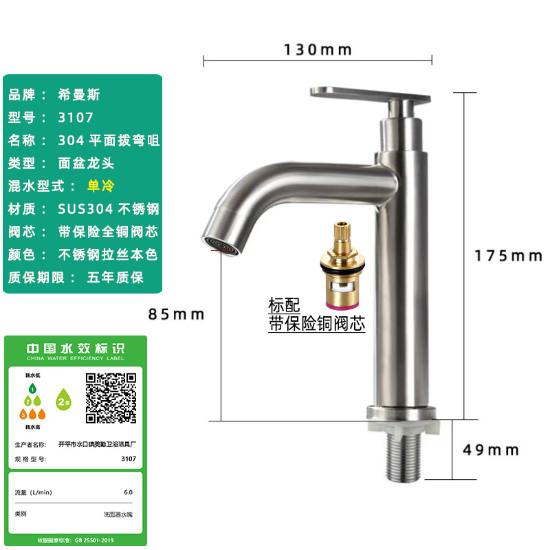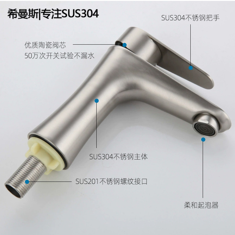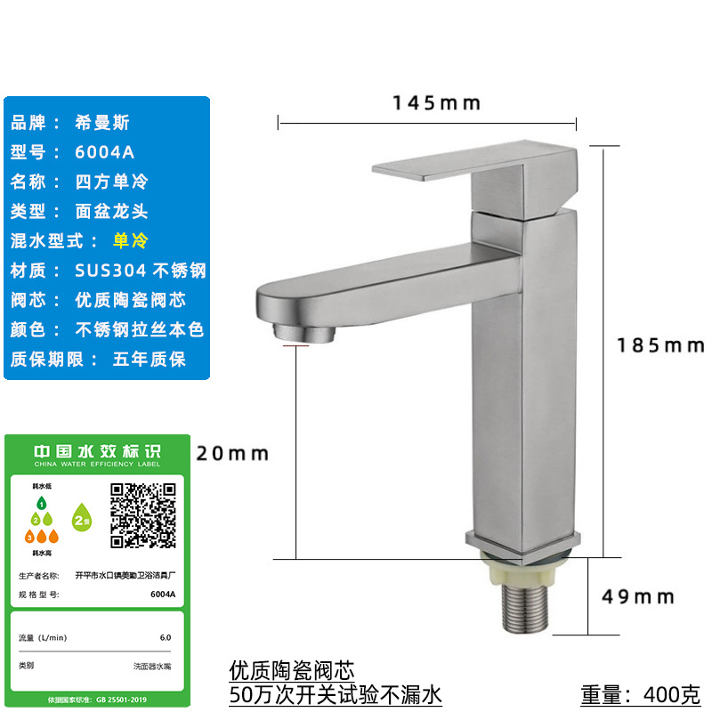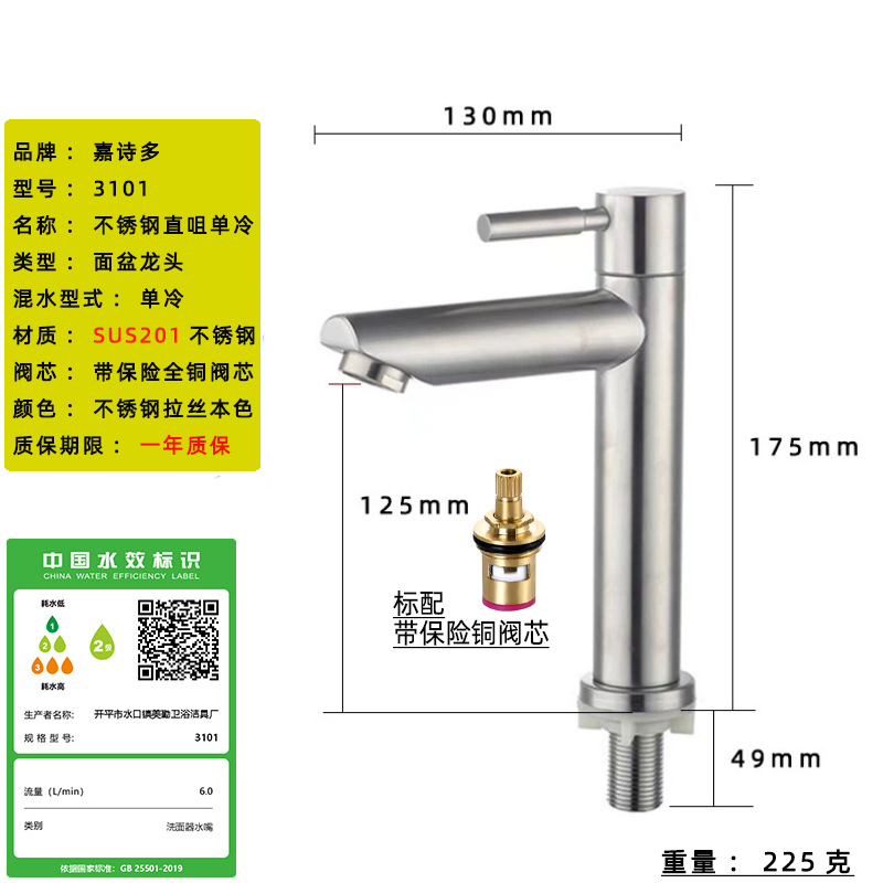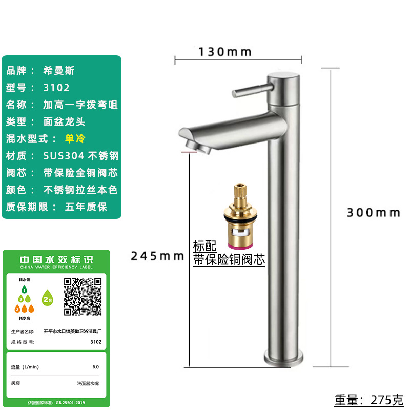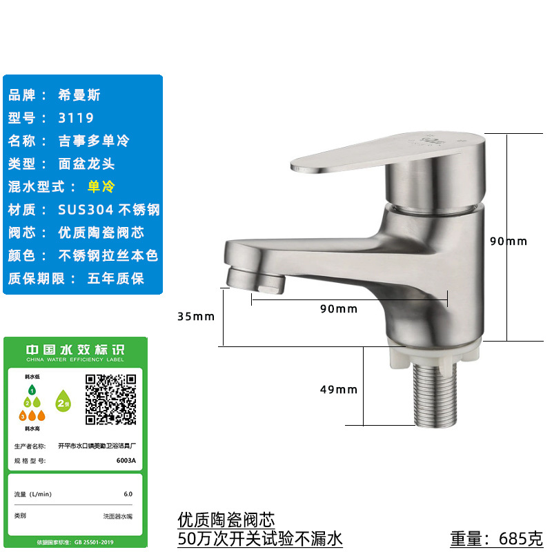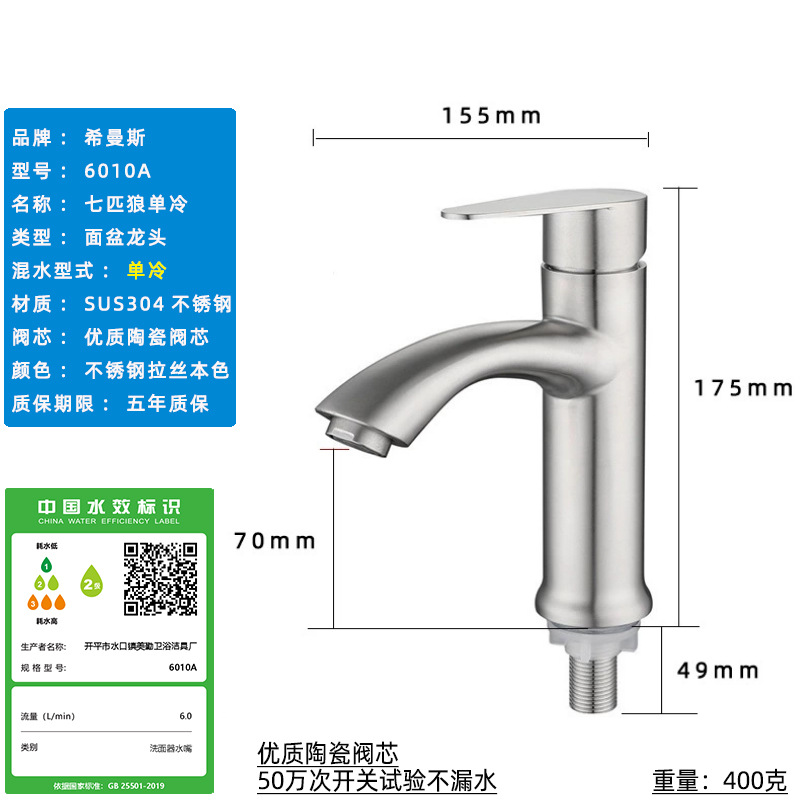 Смеситель для раковины из нержавеющей стали 304, одинарный холодный умывальник для ванной комнаты, умывальник для мытья рук, балконный умывальник, прямой излив, изогнутый излив, маленькая талия