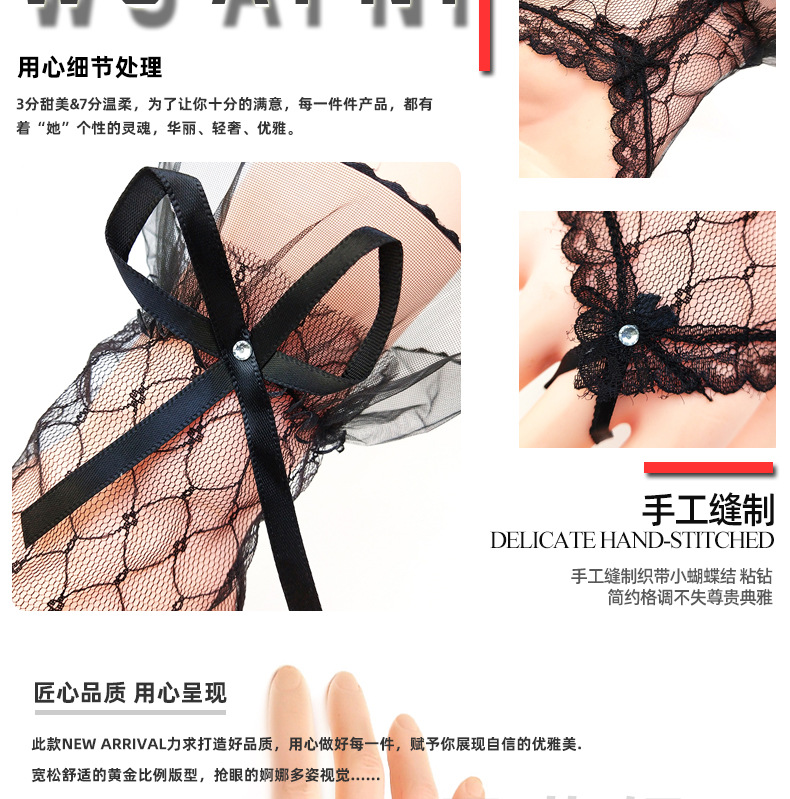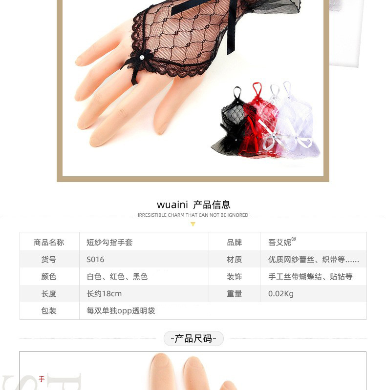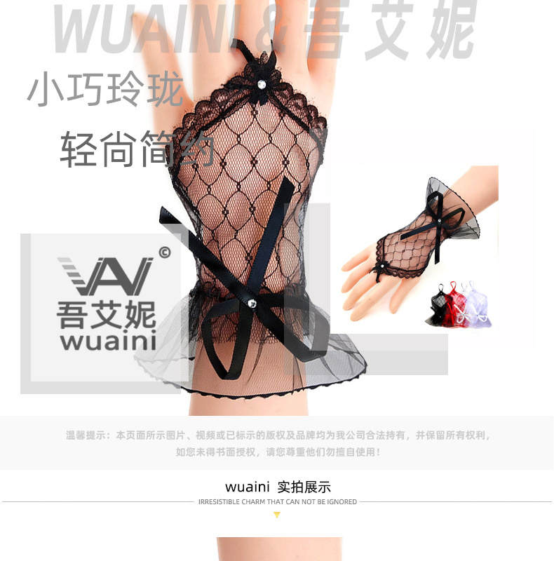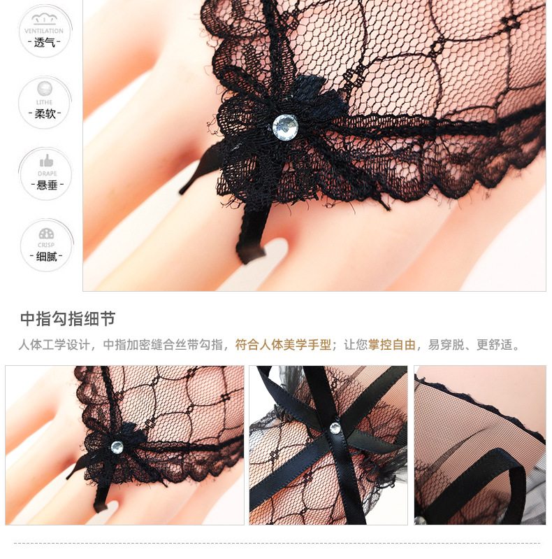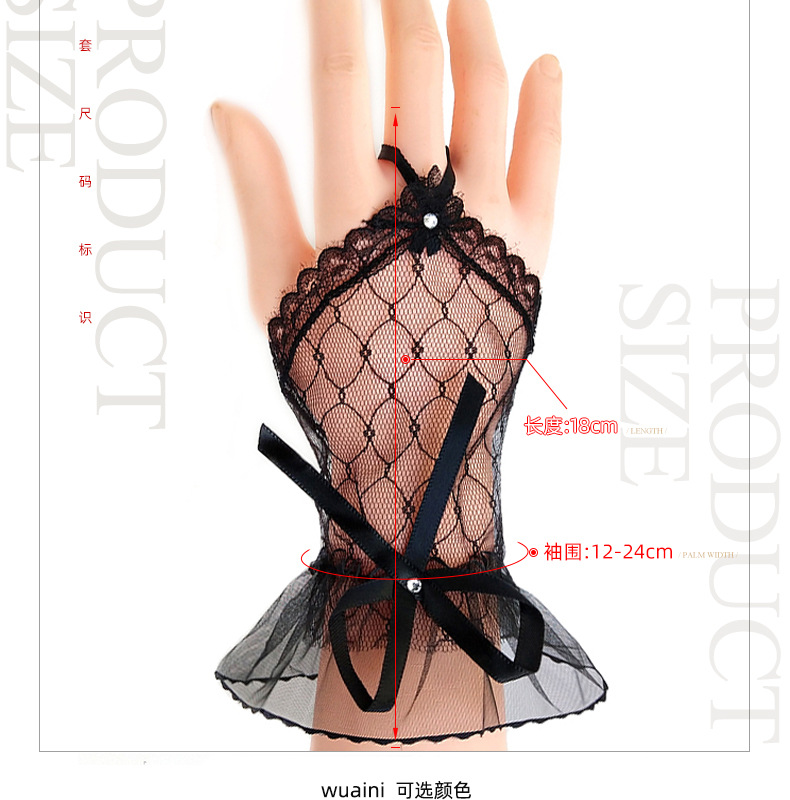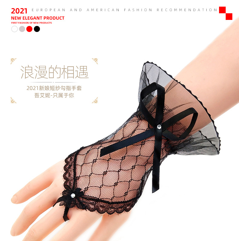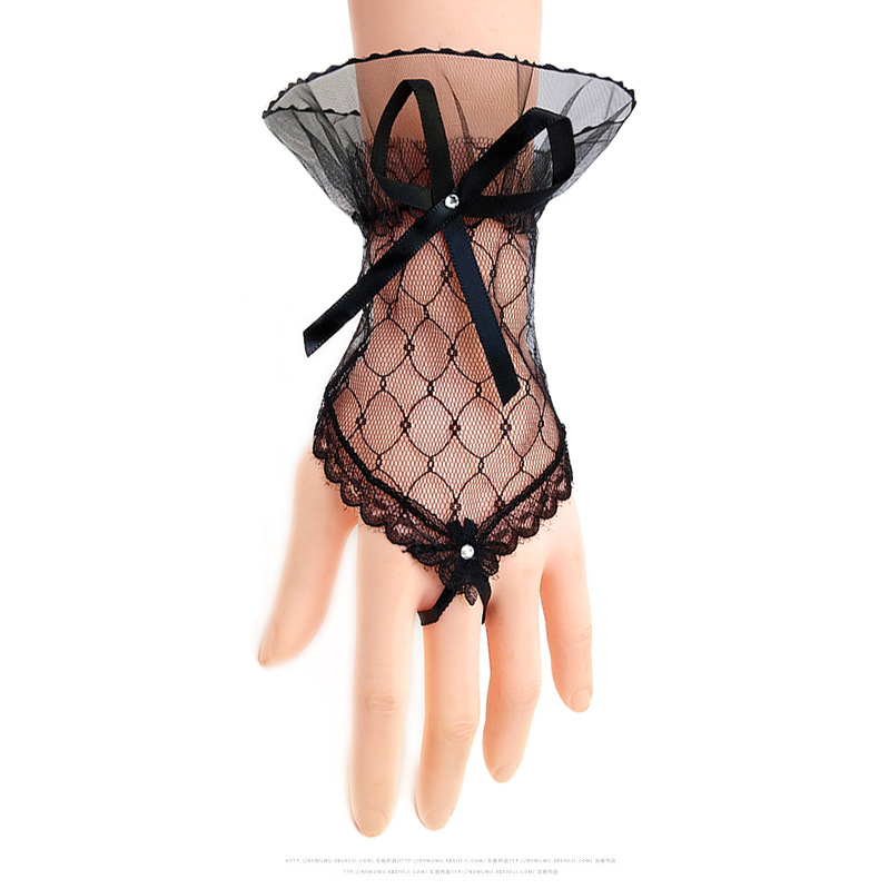 Короткие черные перчатки Кружевной призрак невесты Свадьба Хэллоуин Костюм Лолиты Сетчатый лук Рукав