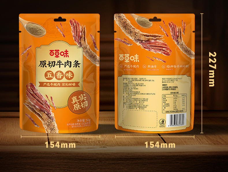 Оригинальные говяжьи полоски Baicaowei со вкусом пяти специй, 50 г, коробка, упаковка 150 шт., интернет-хит, готовые к употреблению, маленькие закуски, оптом