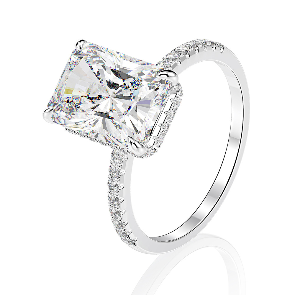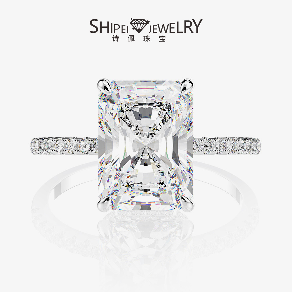 Ювелирные изделия Shipei Европа и США Самые продаваемые серебро 925 пробы 4ct Высокоуглеродистый алмаз 8*11 прямоугольное Изумрудное кольцо для резки Женские простые