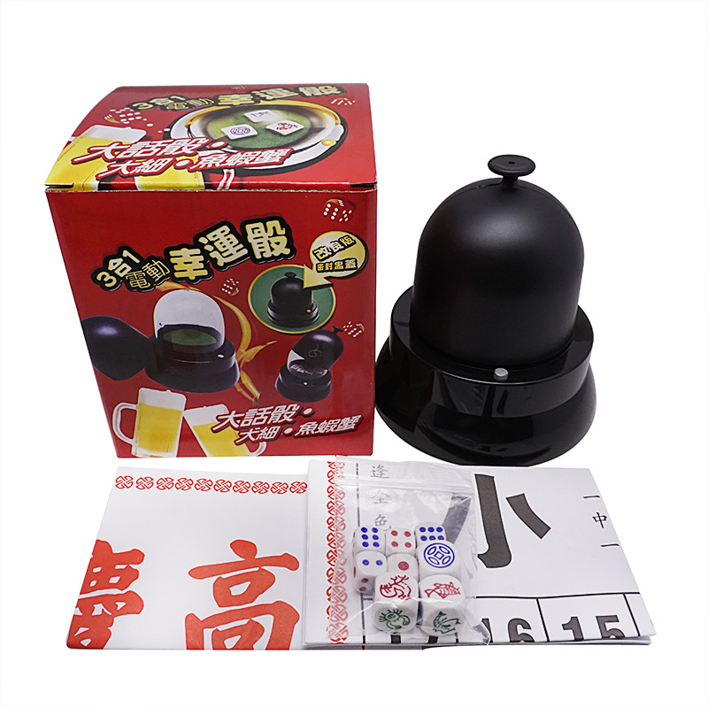 | 产品名称:全盖骰盅 | 供电方式:5号电池*2节 | 包装:彩盒 |