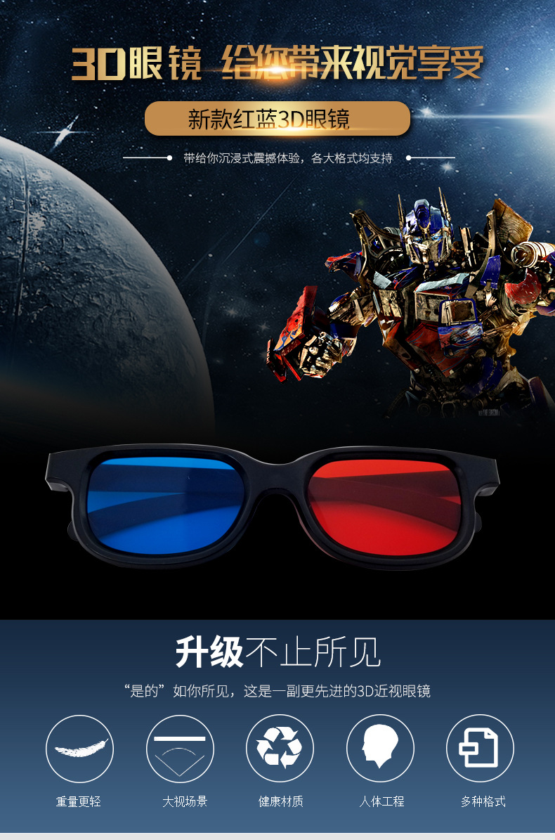 Модные красные и синие очки 3D персонализированные тренды красные и синие линзы