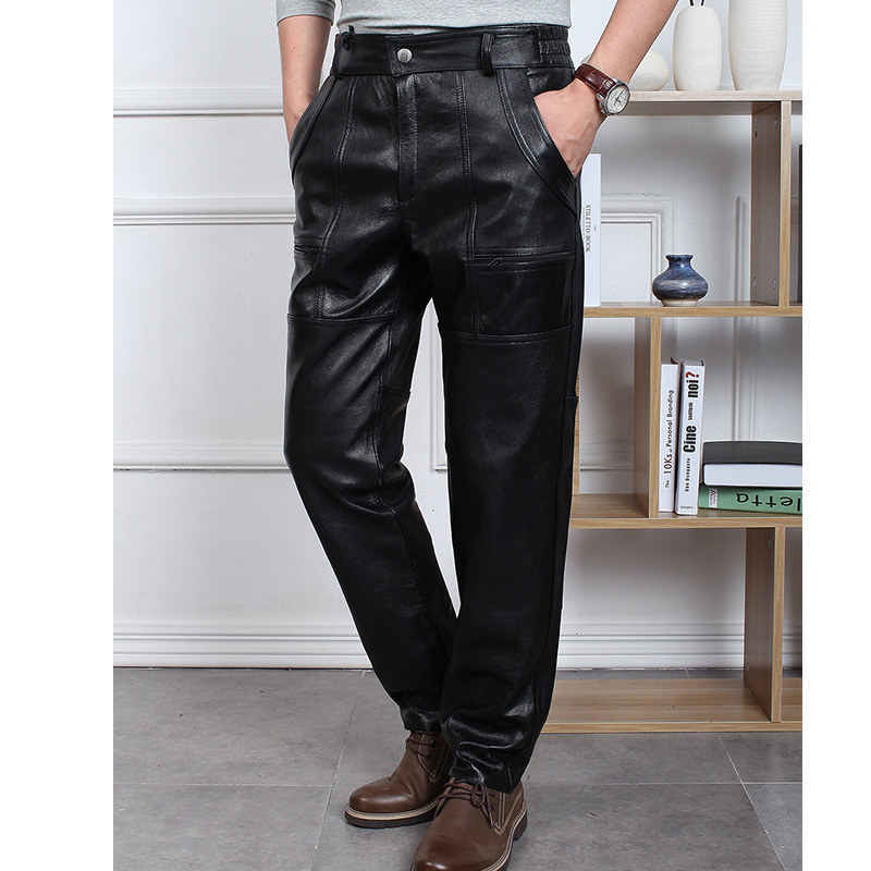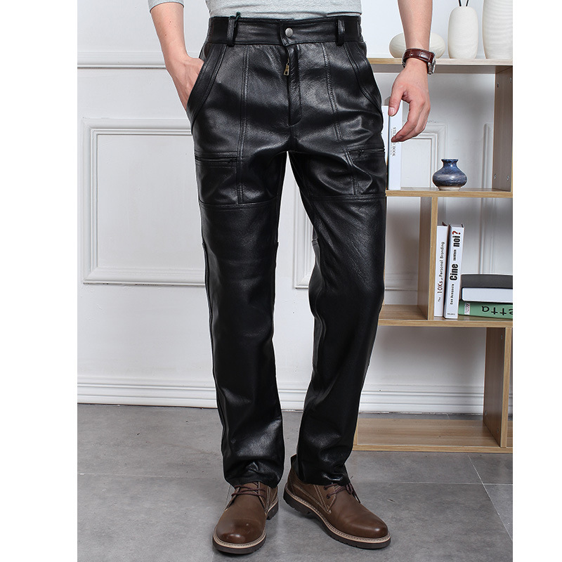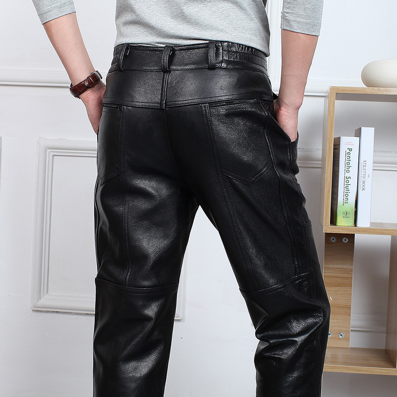 Мужские брюки из натуральной кожи, брюки из первого слоя воловьей кожи, новые модные прямые брюки большого размера 510