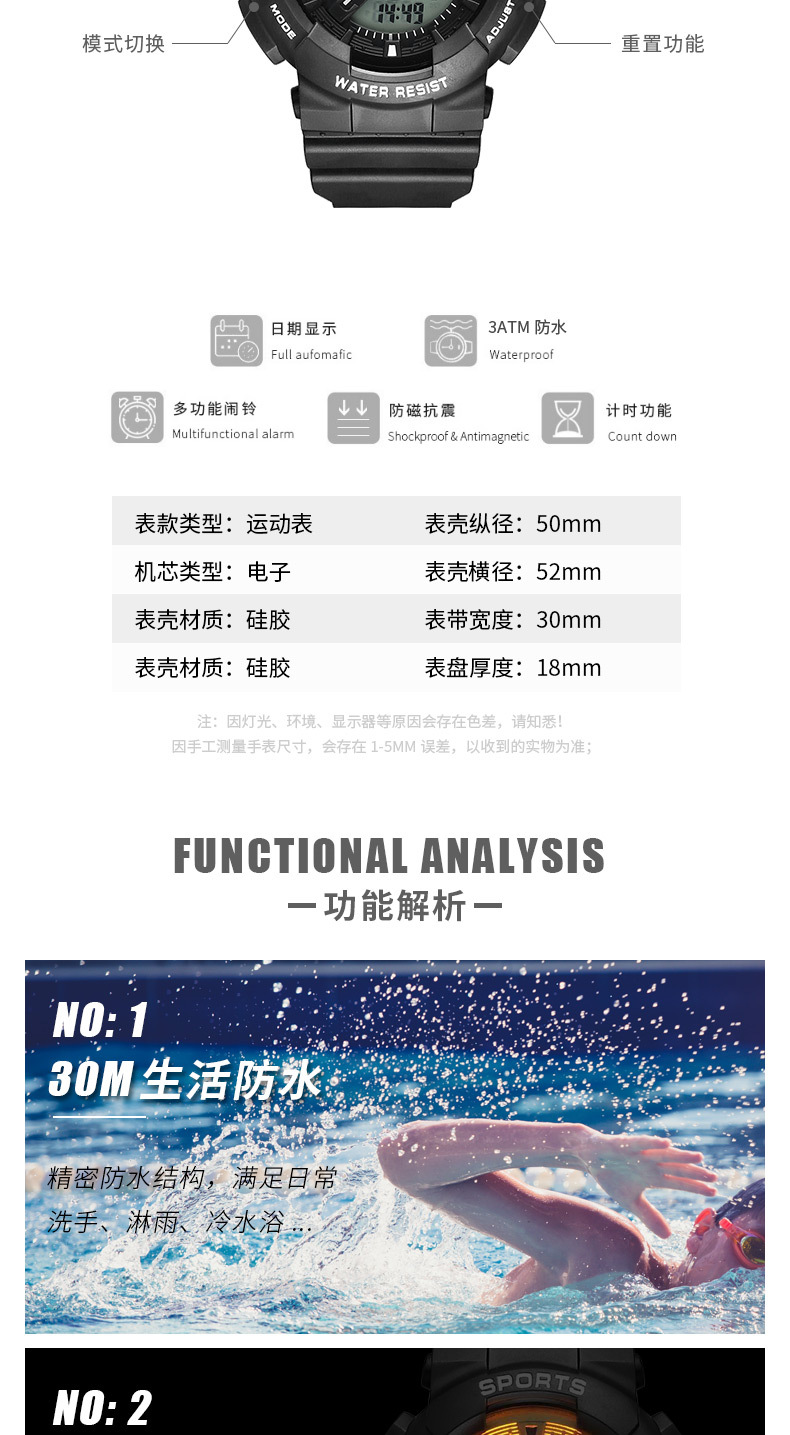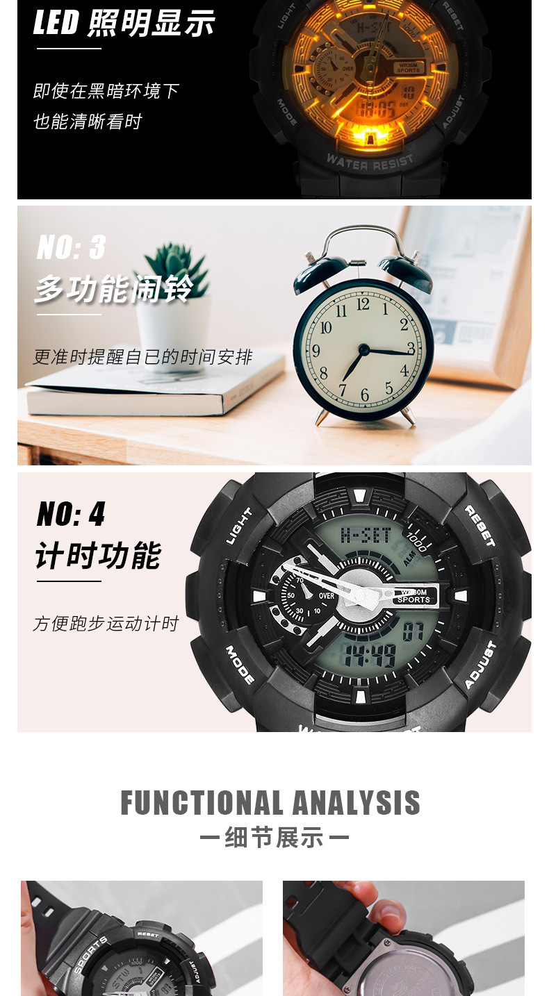 Спортивные водонепроницаемые аналогово-цифровые часы Unicorn для студентов, парные часы, светодиодные, модные, для активного отдыха, светящиеся