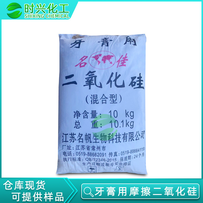 牙膏用二氧化硅是无定型粉末,无味、不溶于水或酸,成化学惰性,与牙膏中氟化物和其它原料相溶性好,二氧化硅的结构和粒度可以由生产条件加以控制,针对牙膏的种类不同,分别生产出:磨擦型、混合型、增稠型三种产品。